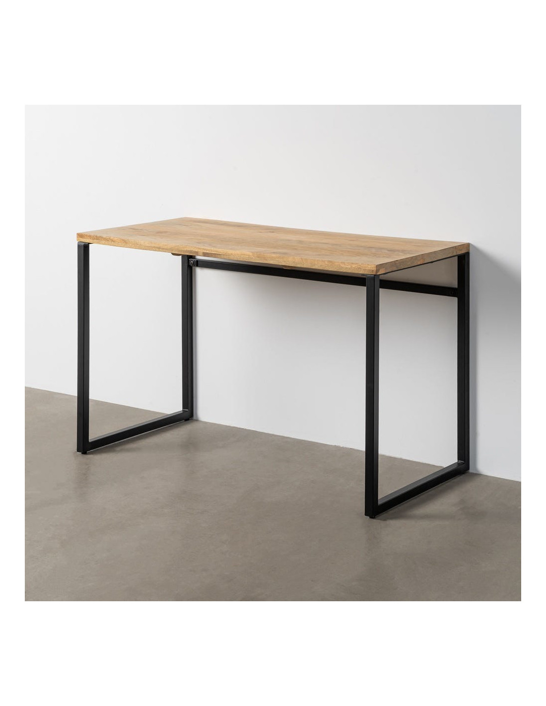 Le bureau industriel Eyora associe la chaleur du bois de manguier naturel à une structure graphique en métal noir. Son format 120 x 60 cm offre un espace de travail confortable tout en restant compact. Idéal pour aménager un coin télétravail élégant dans un salon ou une chambre contemporaine.