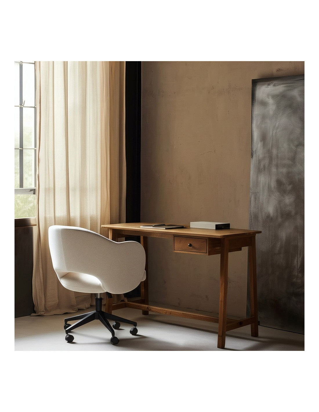 Bureau moderne 1 tiroir en Bois de manguier Naturel Romin