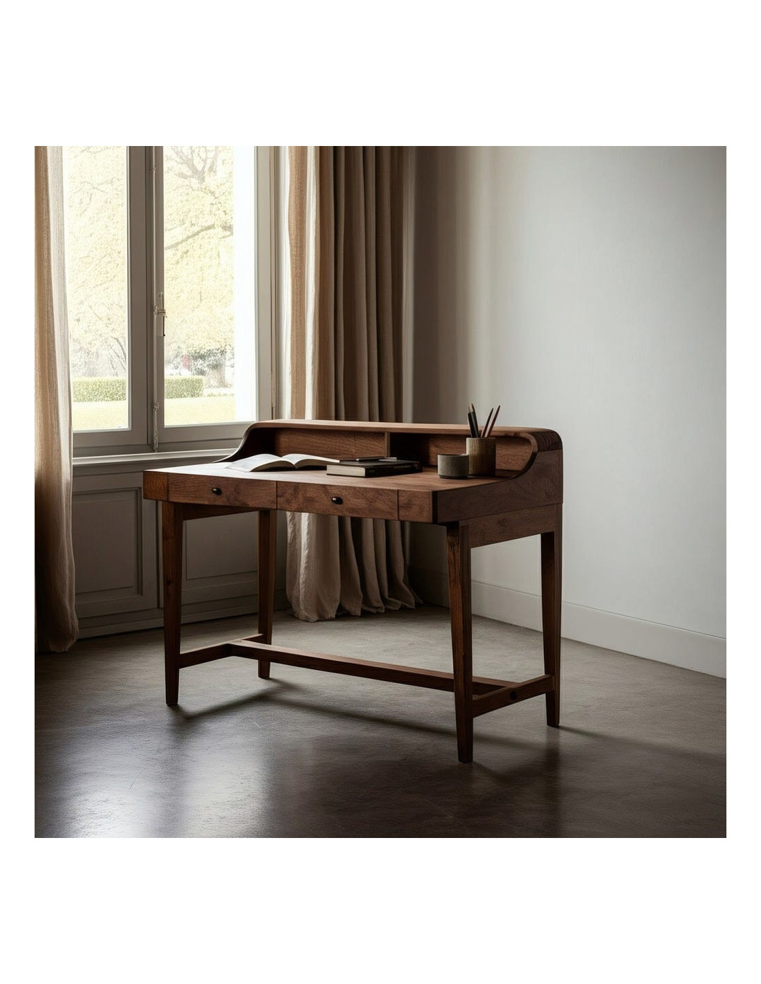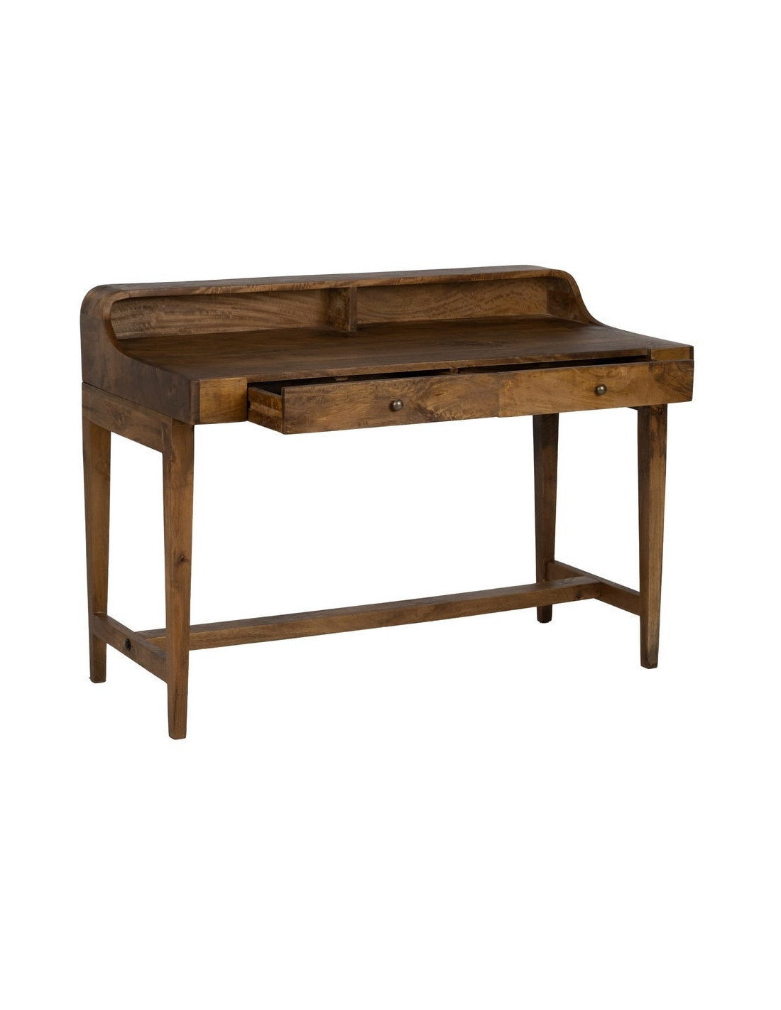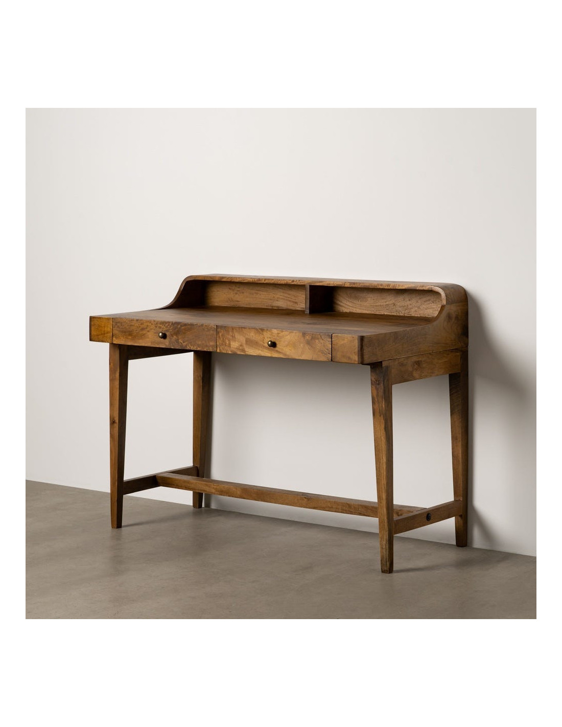 Bureau moderne chic 2 tiroirs 2 niches 1 étagère en Bois de manguier Naturel Botoa