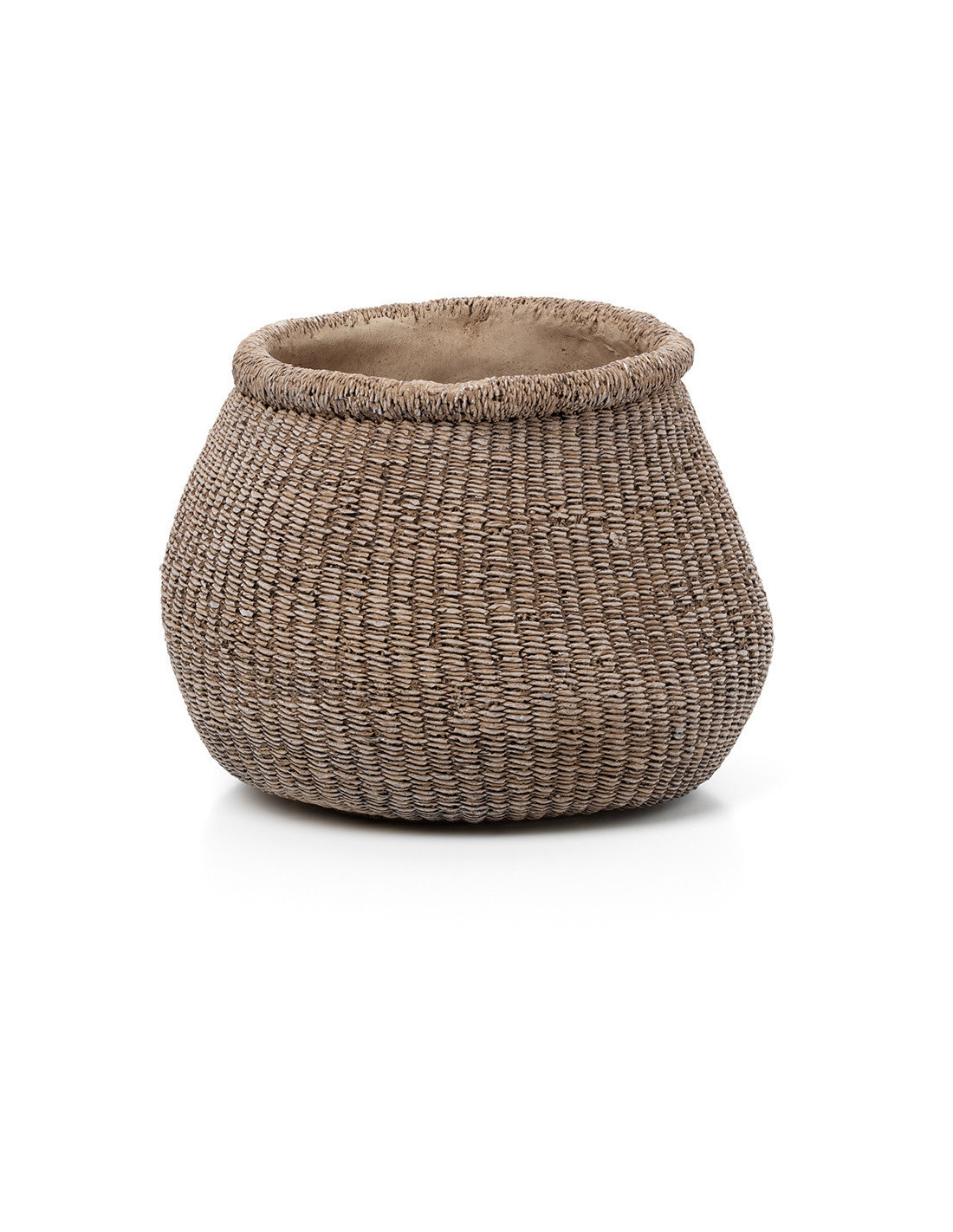 Cache-pot bohème chic Rond D 25 cm Ciment Marron Effet fibre tressée The Faux-Puff