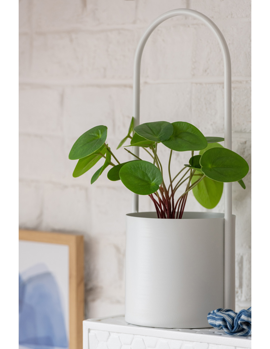 Cache-pot design avec poignée Rond Métal Blanc Minéo