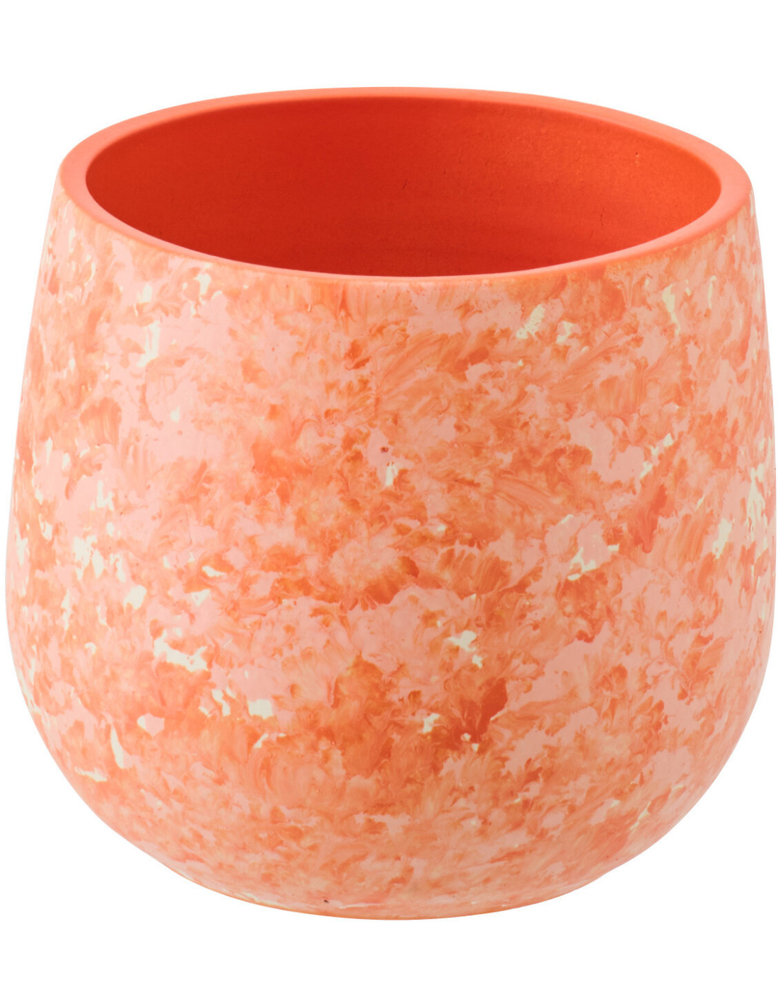 Cache-pot design moderne Rond D 16 cm Céramique Orange Blanc Effet terrazzo Orano