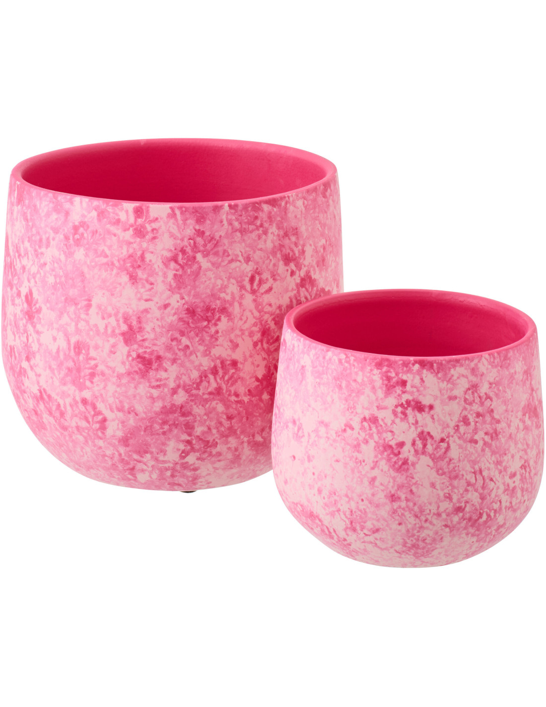 Cache-pot design moderne Rond D 23 cm Céramique Rose Blanc Effet terrazzo Orano