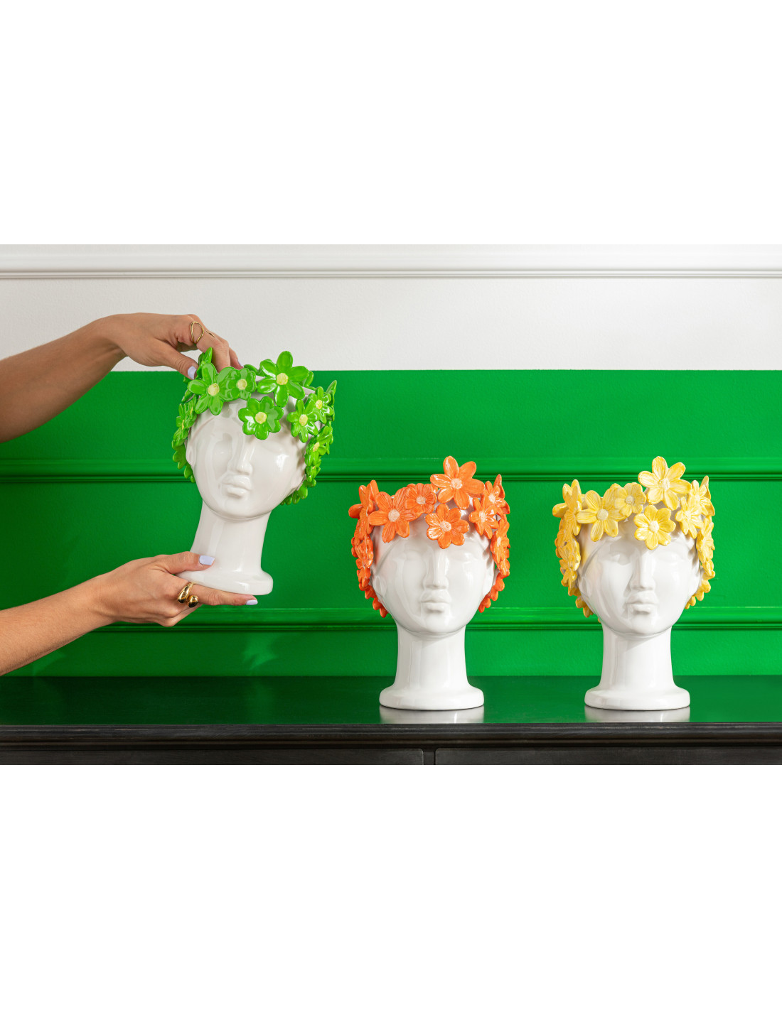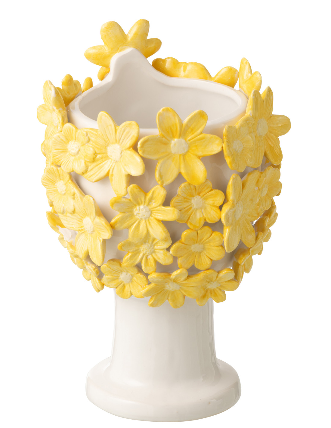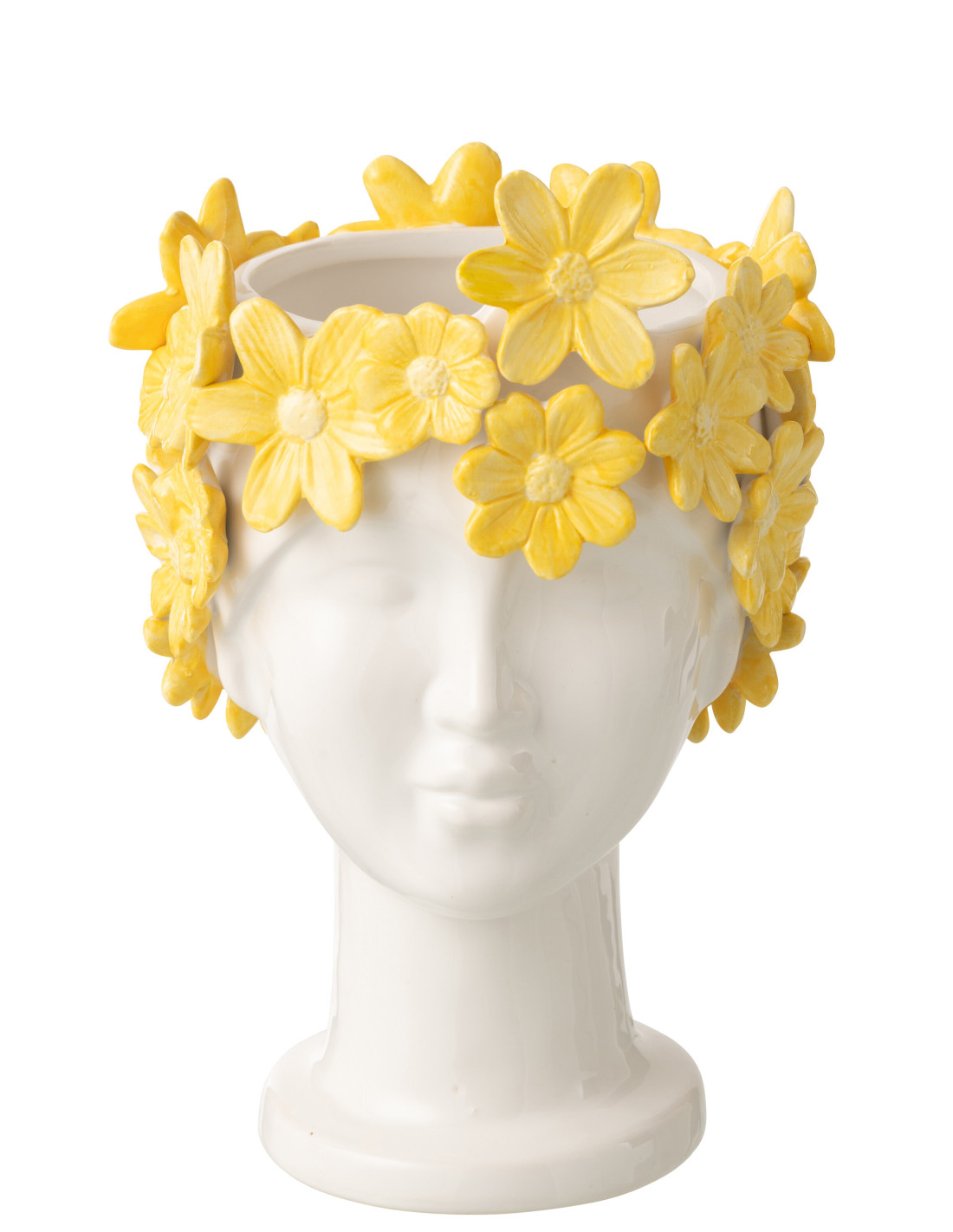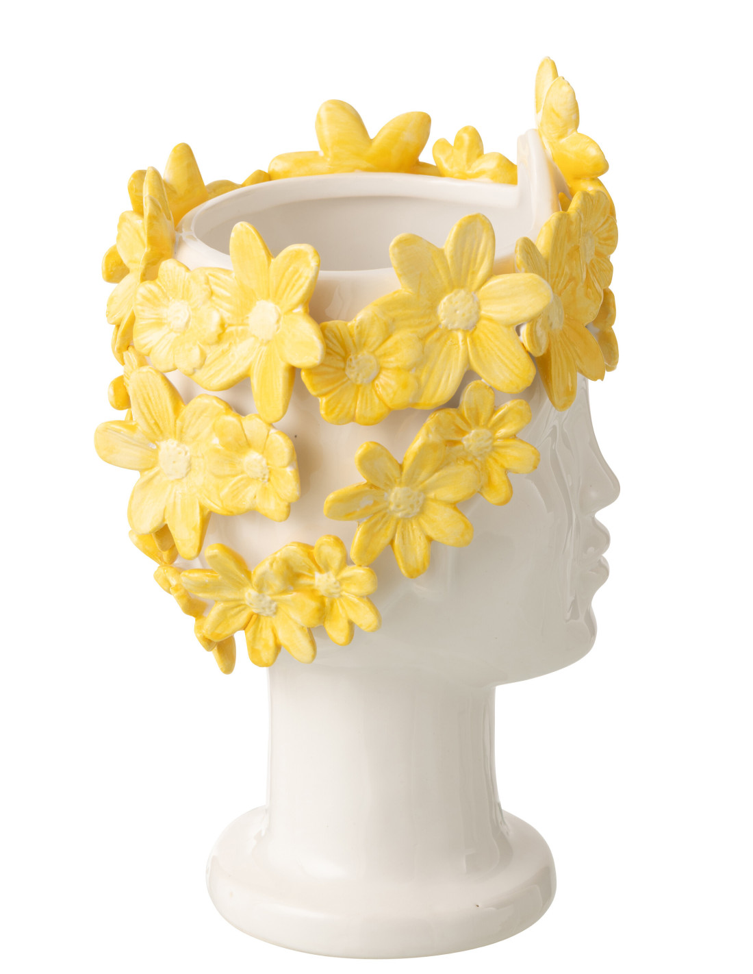 Cache-pot design sur pied Femme Fleurs H 24 cm Céramique Blanc Jaune Floriax