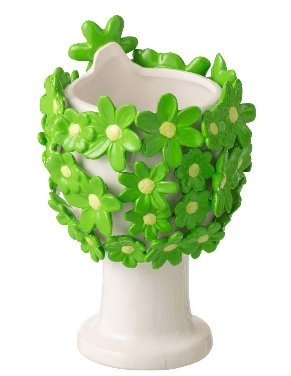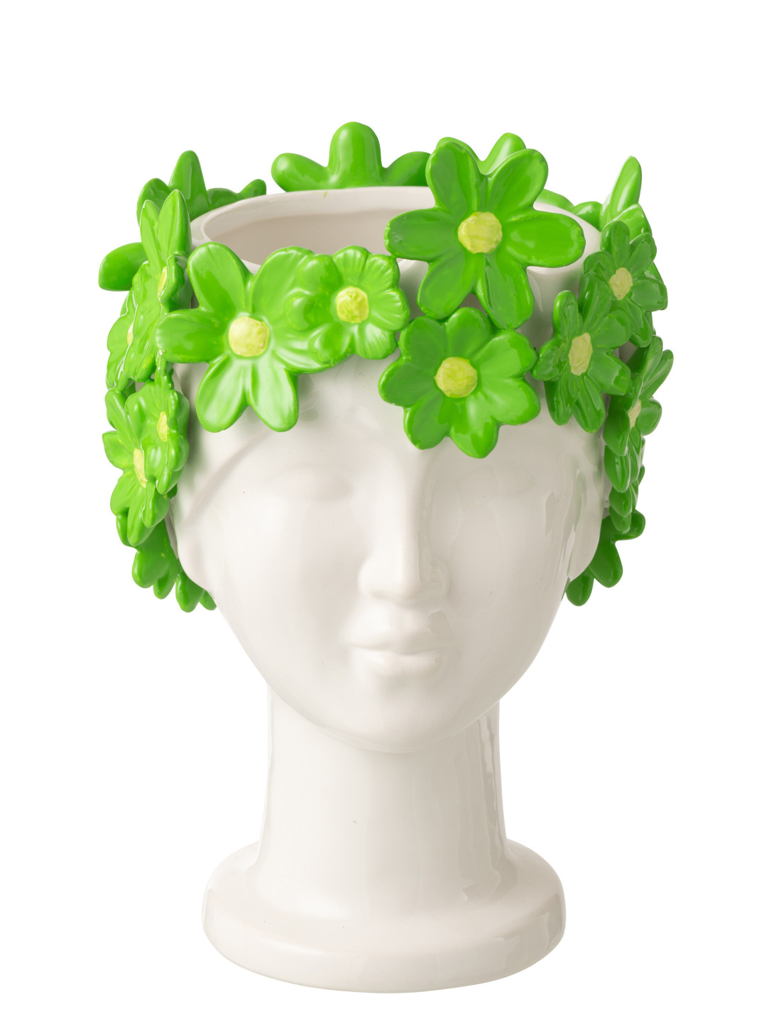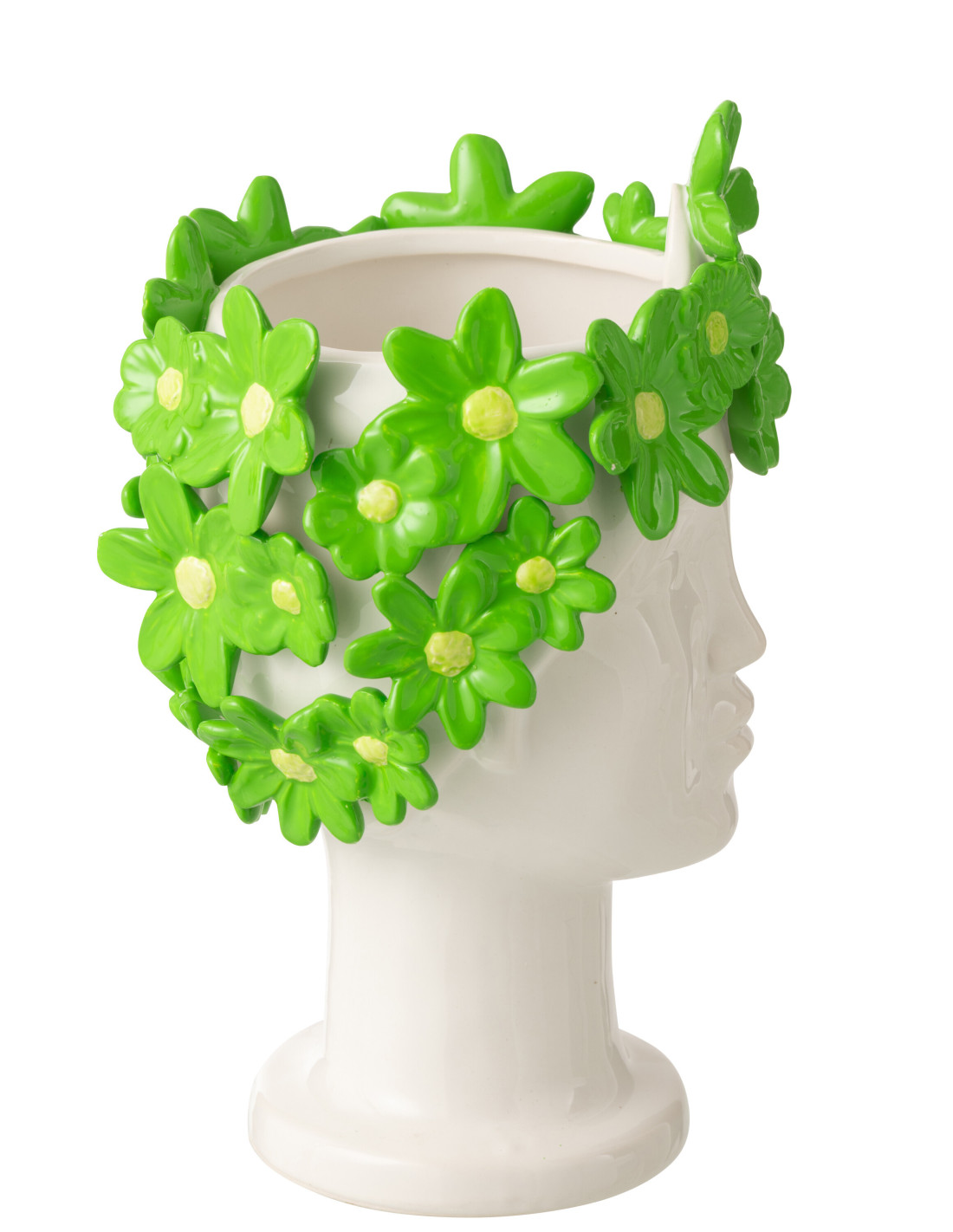 Cache-pot design sur pied Femme Fleurs H 24 cm Céramique Blanc Vert Floriax