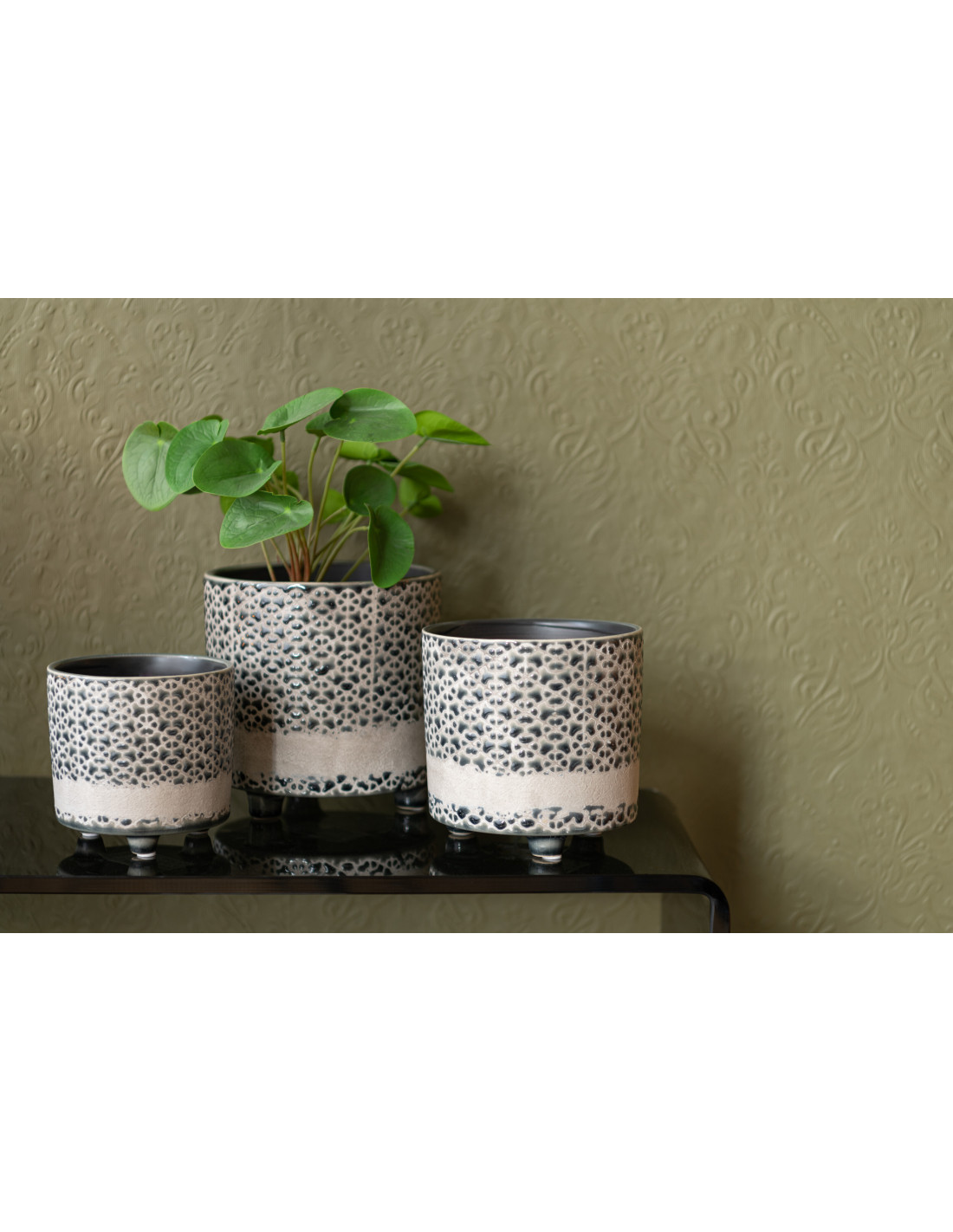 Cache-pot en Céramique Gris Bleu Faenza Diamètre 16 cm Motif mosaïque