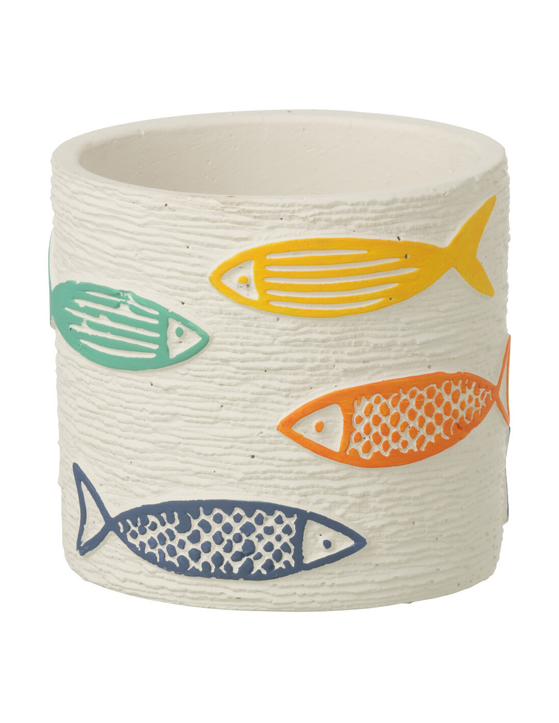 Cache-pot extérieur bord de mer Rond D 11 cm Ciment Blanc Motif poissons Multicolore Aqualo