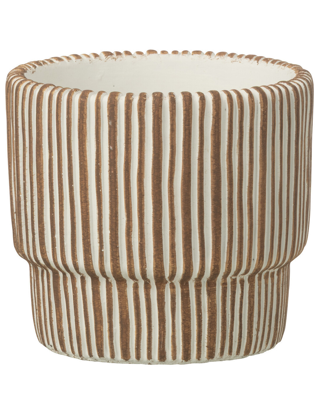 Cache-pot extérieur ethnique chic Rond D 14 cm Ciment Marron Blanc Motif lignes Cannelia