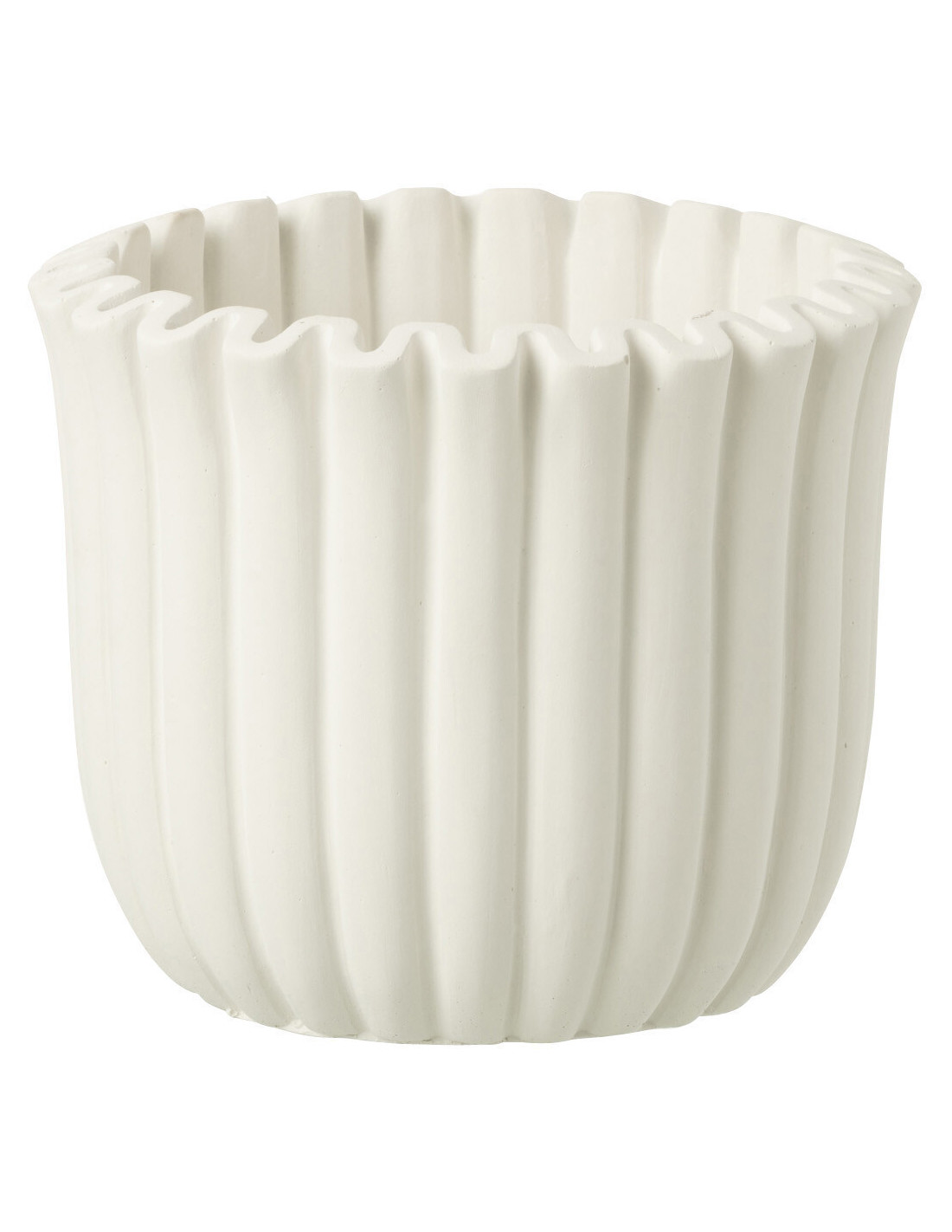 Cache pot moderne côtelé Rond Diamètre 15 cm en Ciment Blanc Ondrelle