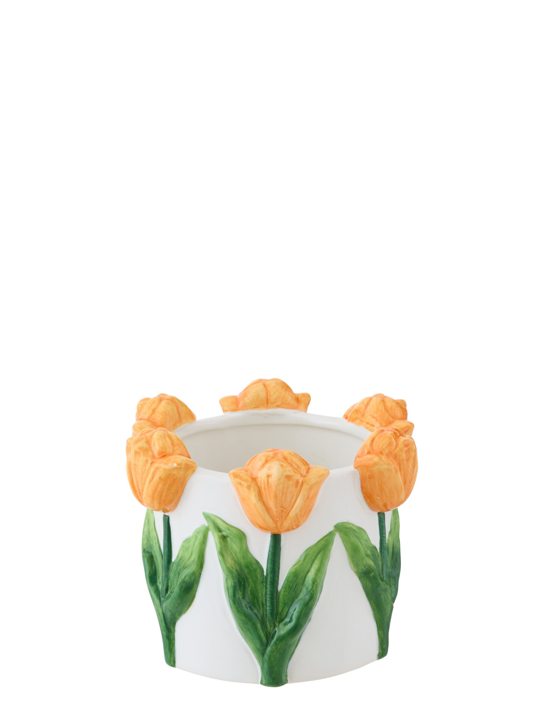 Cache-pot original Tulipes Rond D 16 cm Céramique Orange Vert Blanc Tylia