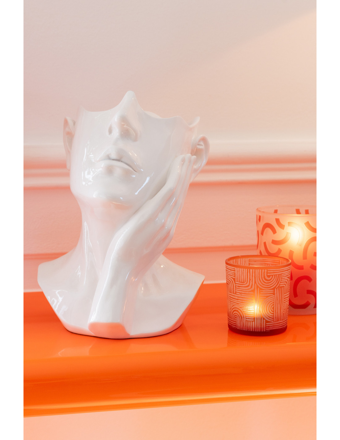Cache-pot original Visage Femme Résine Blanc Herolin