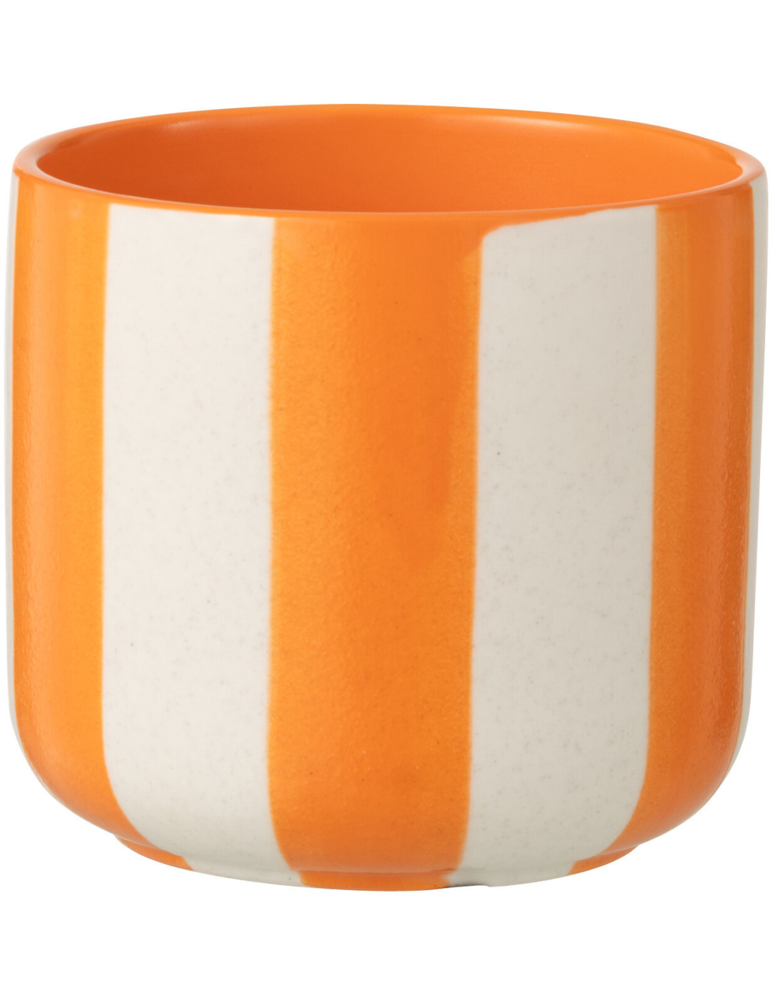 Cache-pot riviera italienne Rond D 13 cm Céramique Orange Blanc Motif lignes Allegra