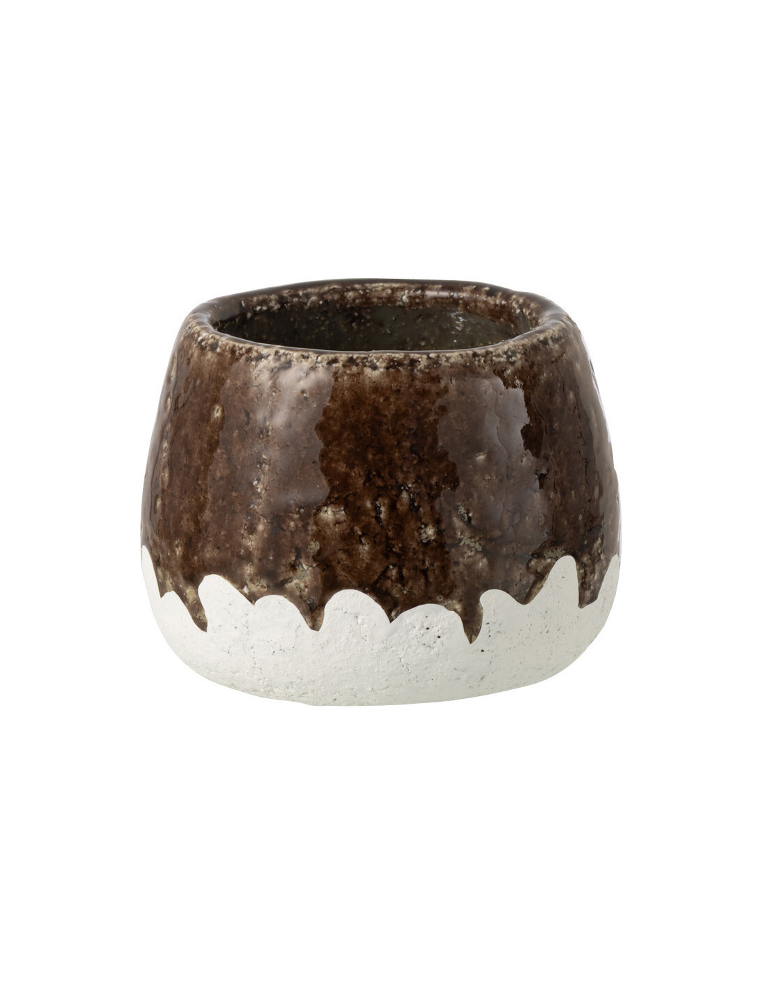 Cache-pot rustique chic bicolore Rond D 16 cm Argile Marron foncé Blanc Campaleo