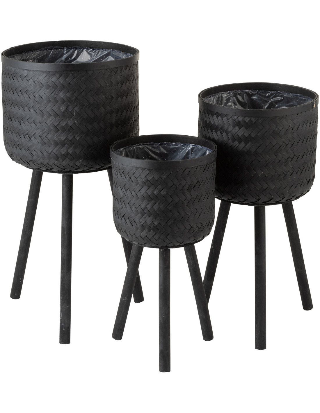 Cache-pot sur pied en Bambou Noir Alice (Lot de 3)