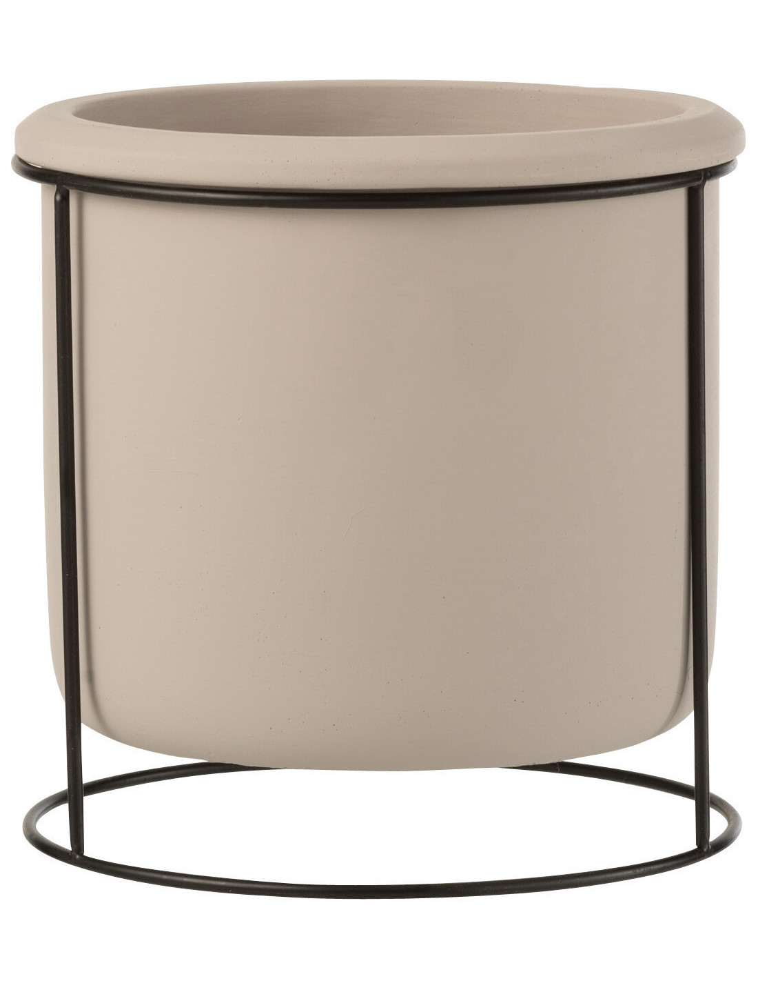 Cache-pot sur pied en Ciment Taupe Métal Noir Hangy Diamètre 17 cm