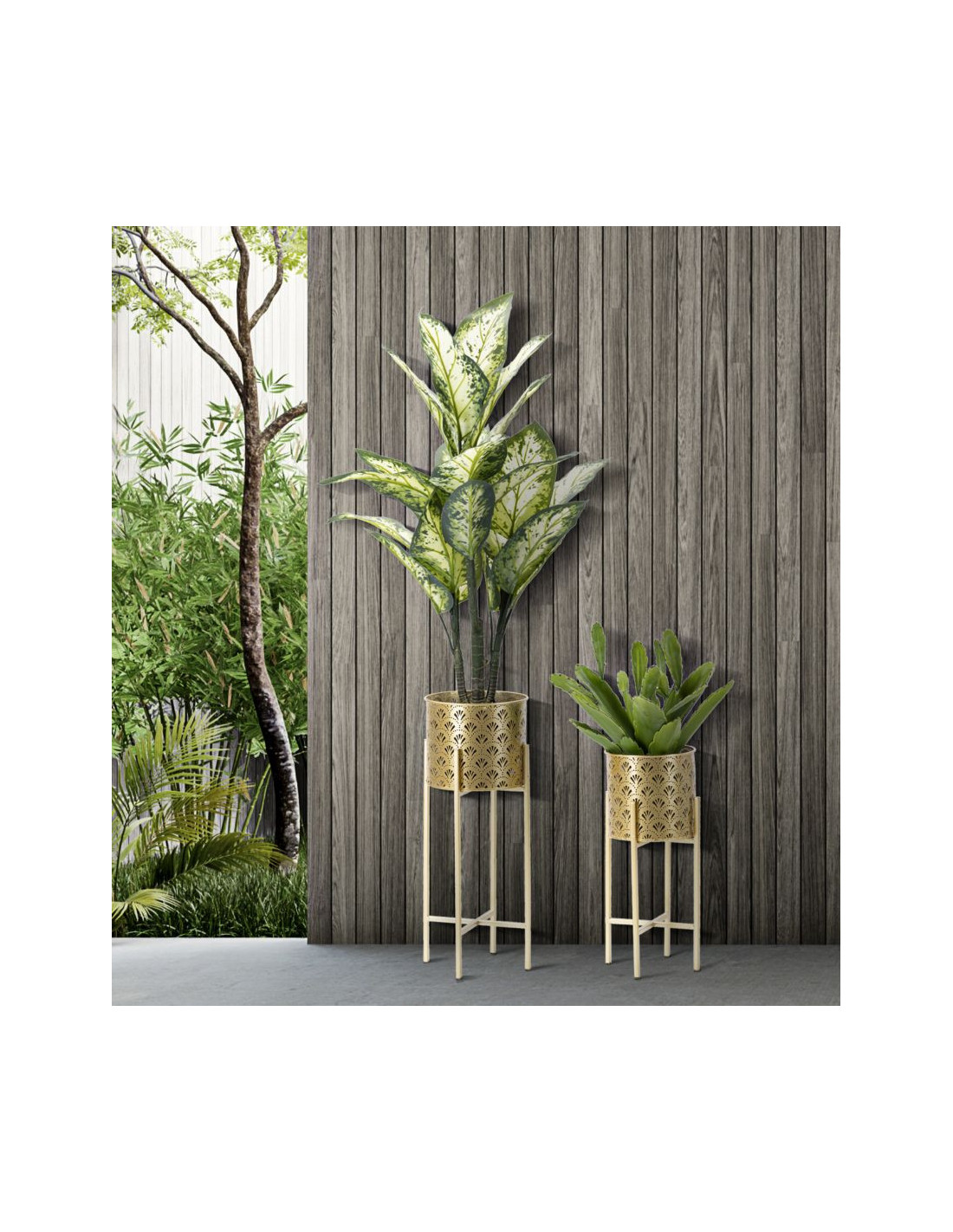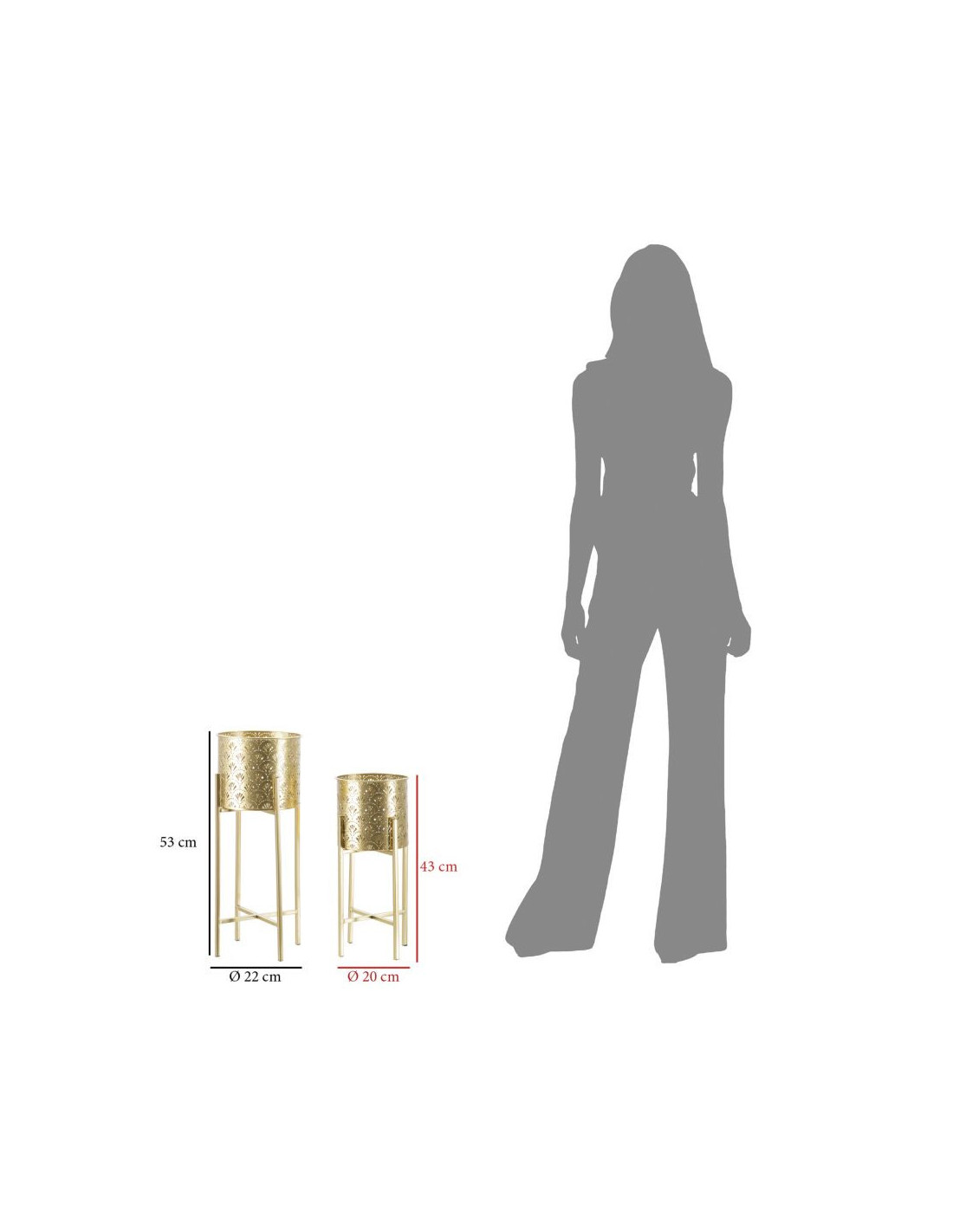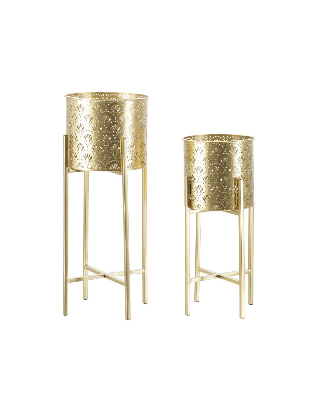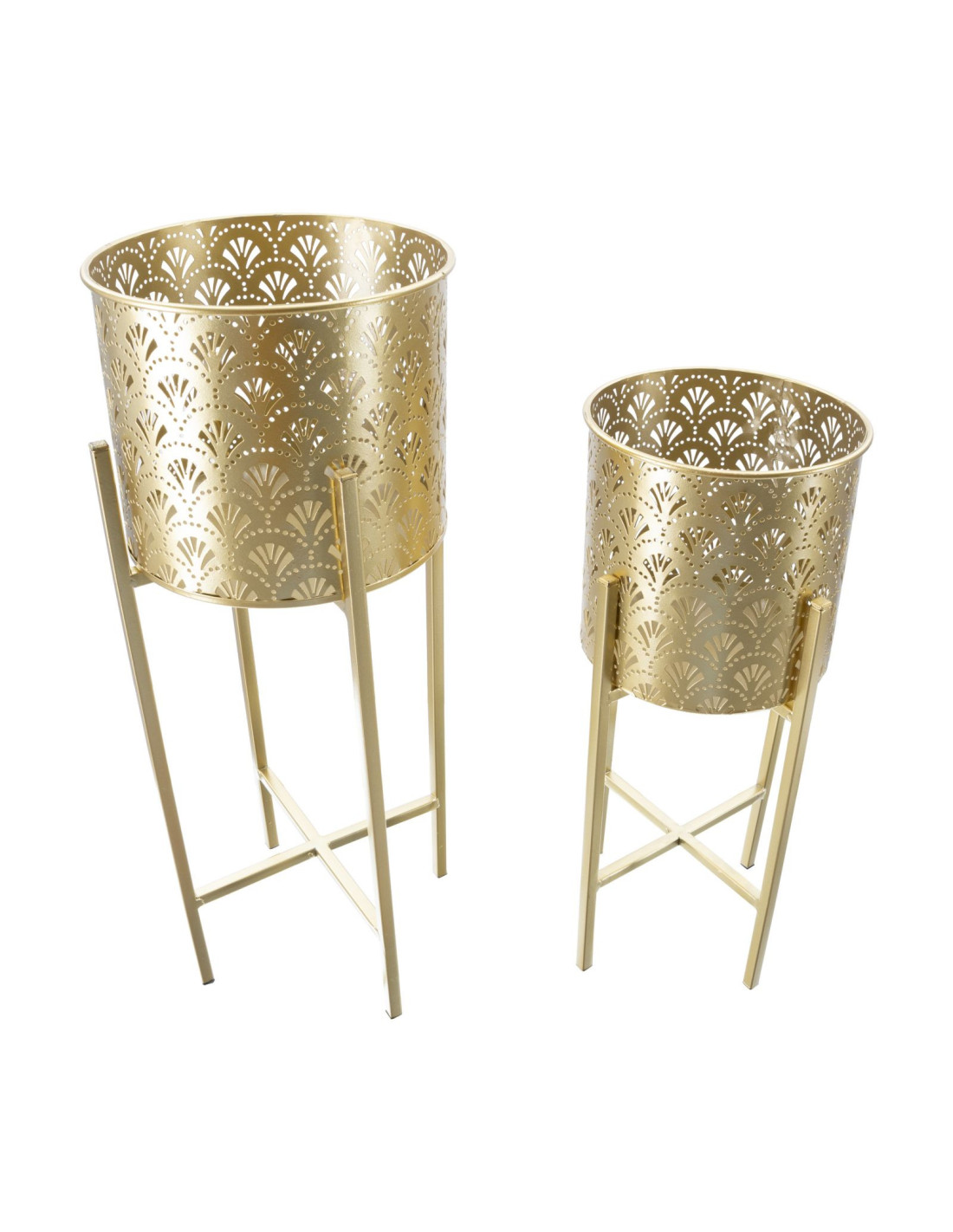Cache pot sur pied moderne ajouré Rond en Métal Doré Golvy B (Lot de 2)