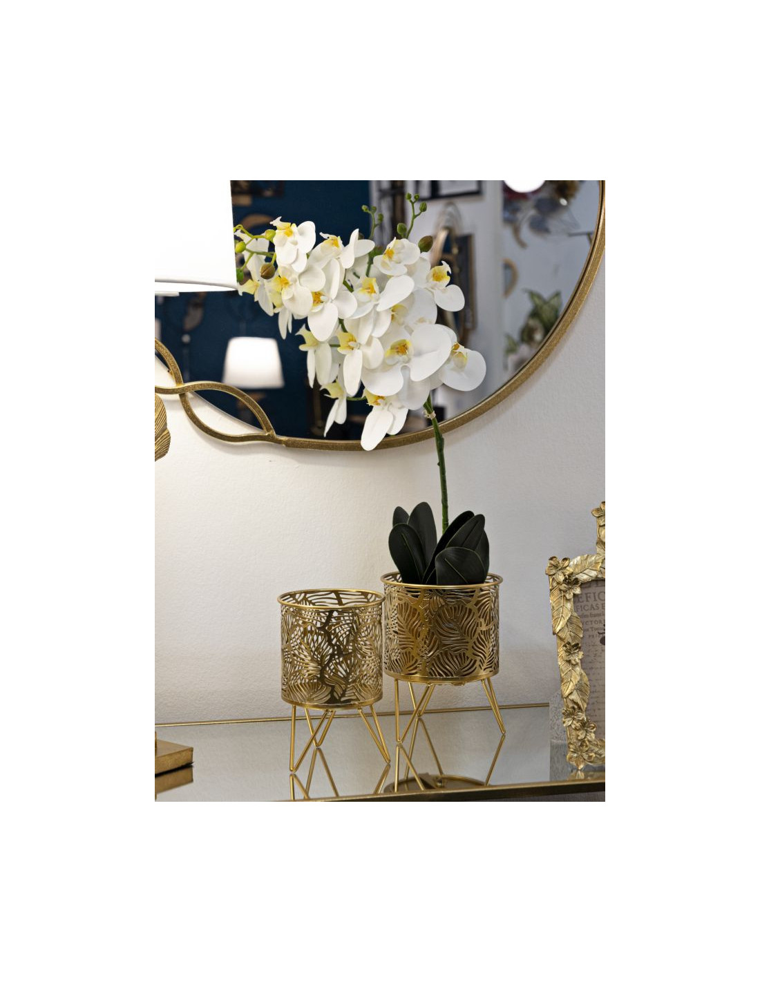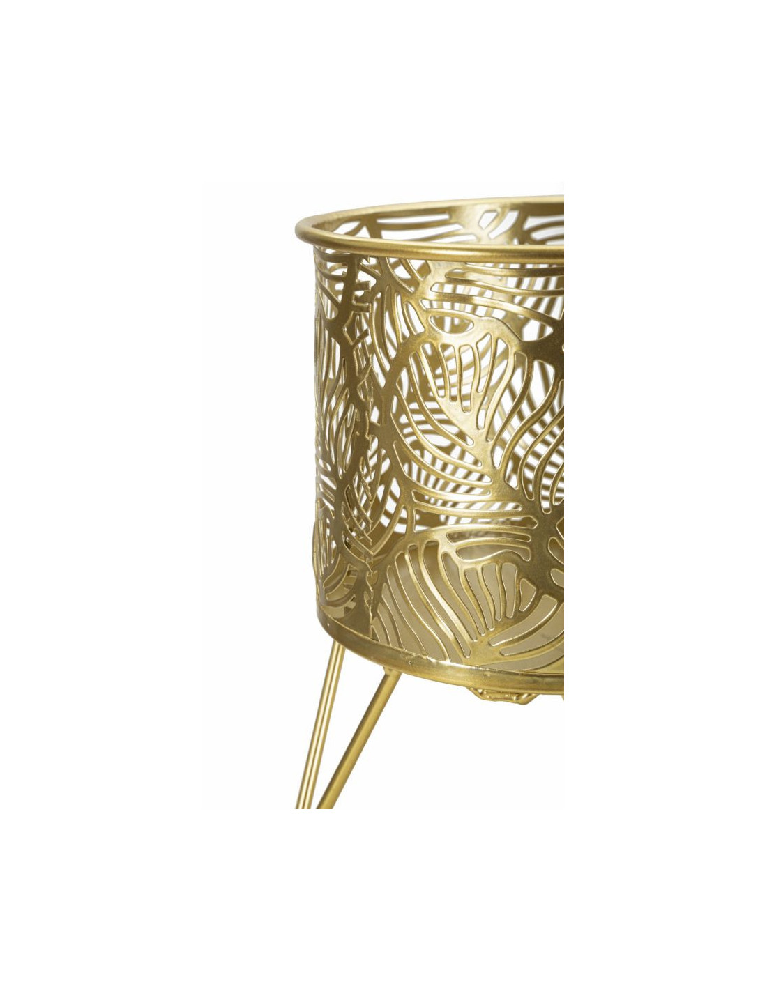 Cache pot sur pied moderne ajouré Rond en Métal Doré Naty (Lot de 2)