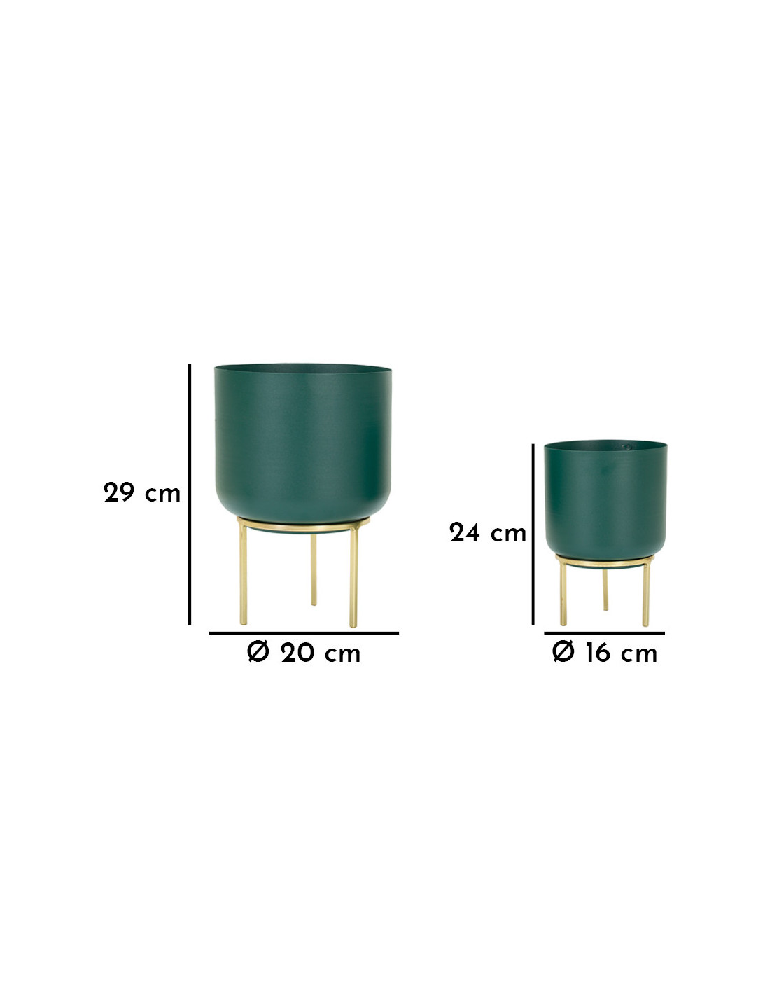 Cache-pot sur pied moderne chic Rond en Métal Vert Doré Grent (Lot de 2)