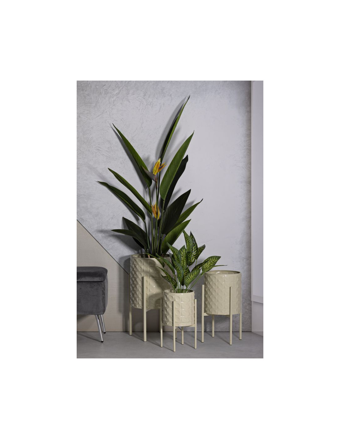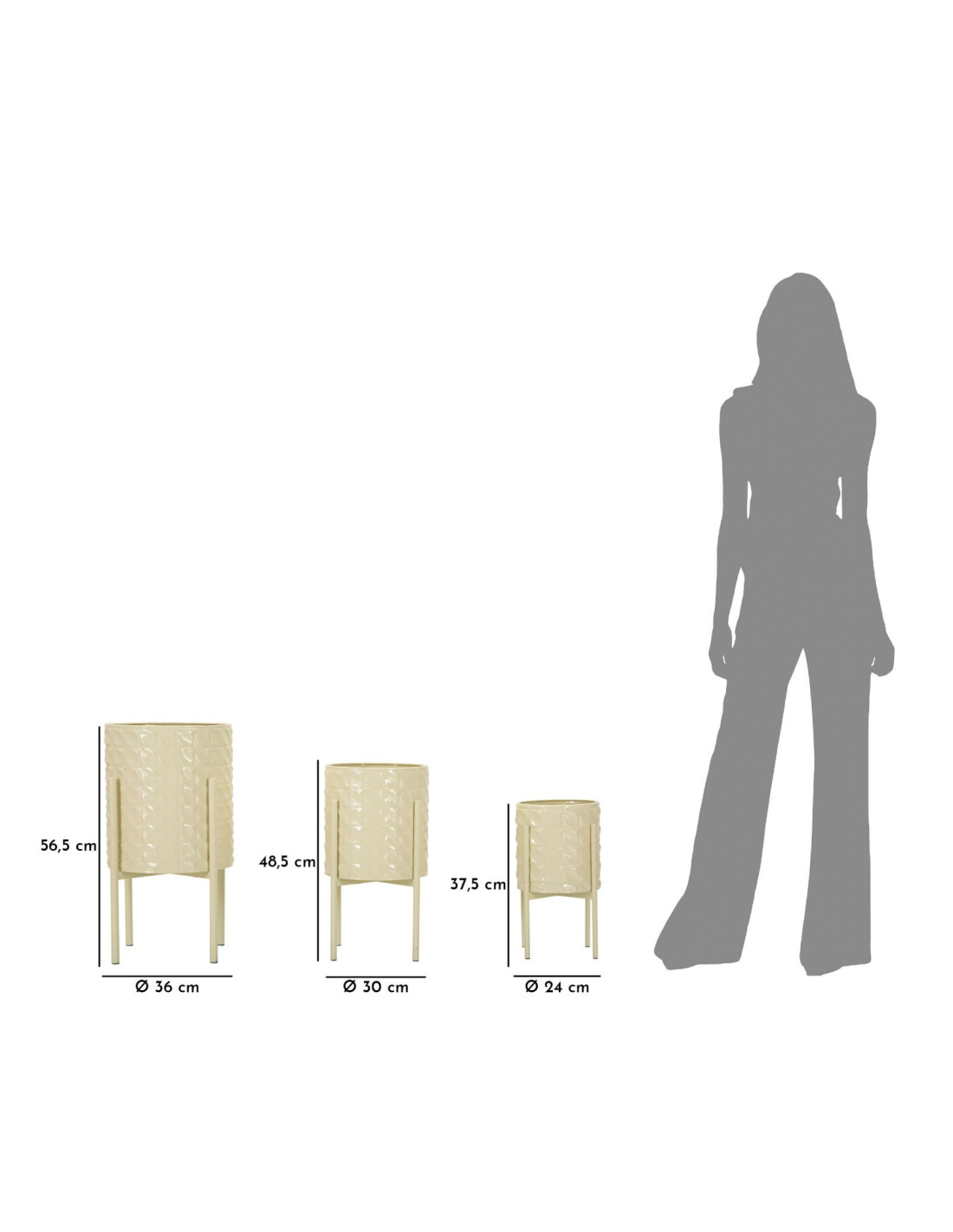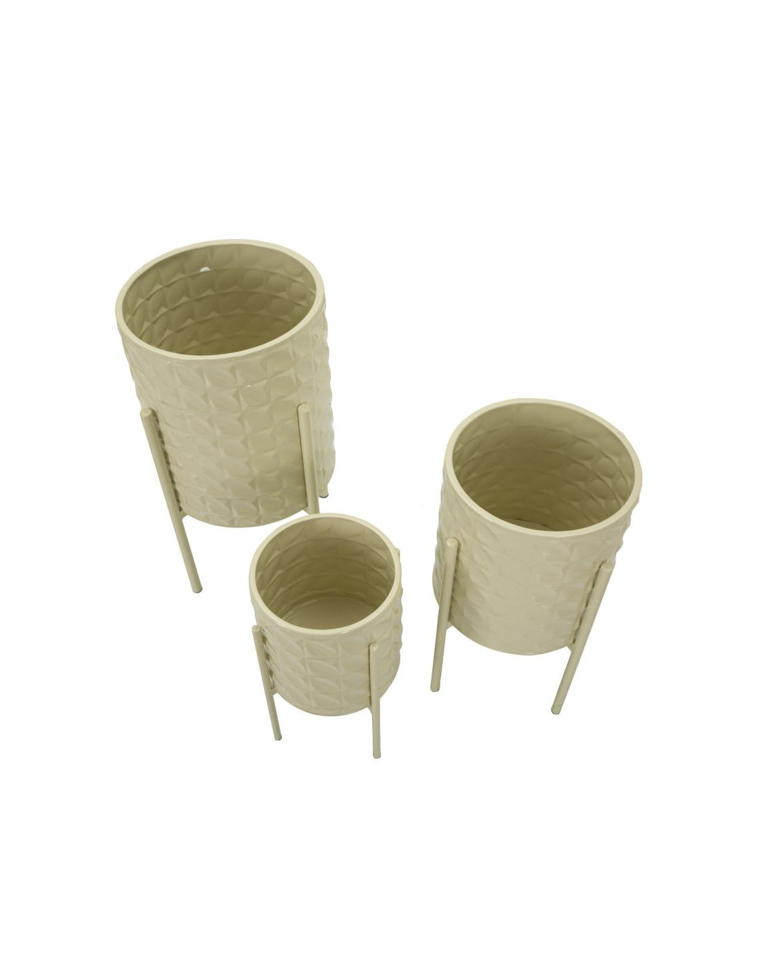 Cache pot sur pied moderne Rond en Métal Blanc crème Betsy (Lot de 3)
