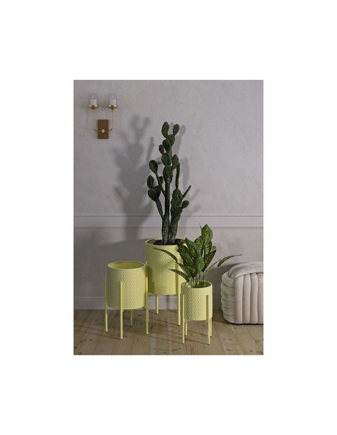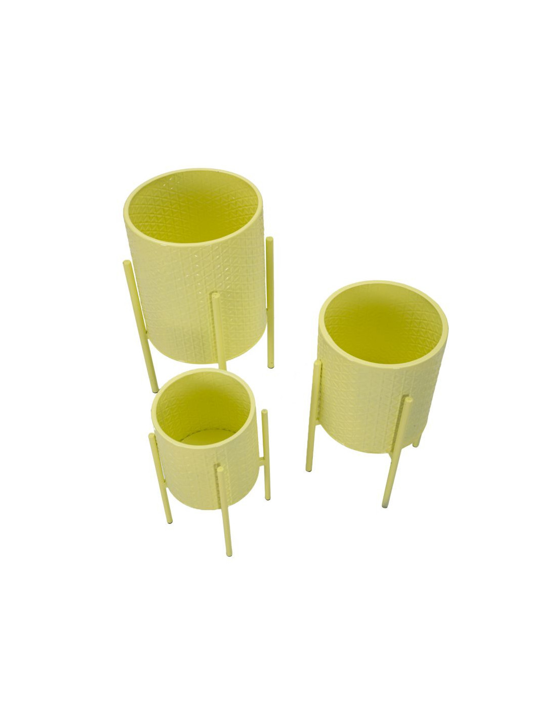 Cache pot sur pied moderne Rond en Métal Jaune Archy (Lot de 3)