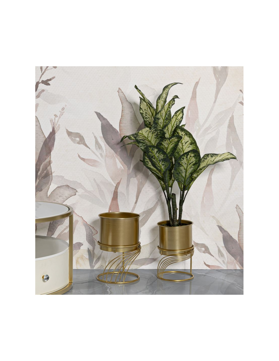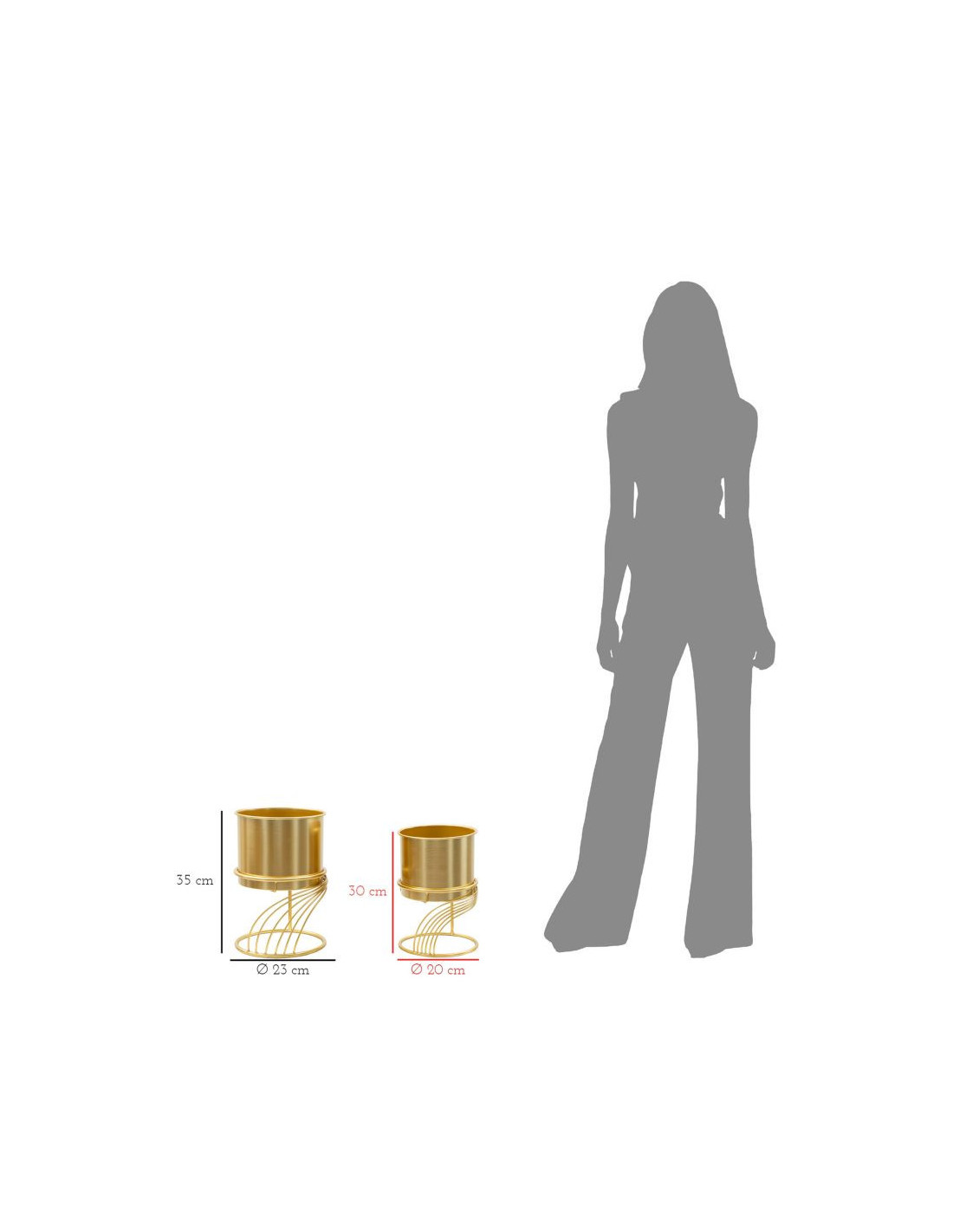 Cache-pot sur pied moderne Spirales Rond en Métal Doré Spirally (Lot de 2)
