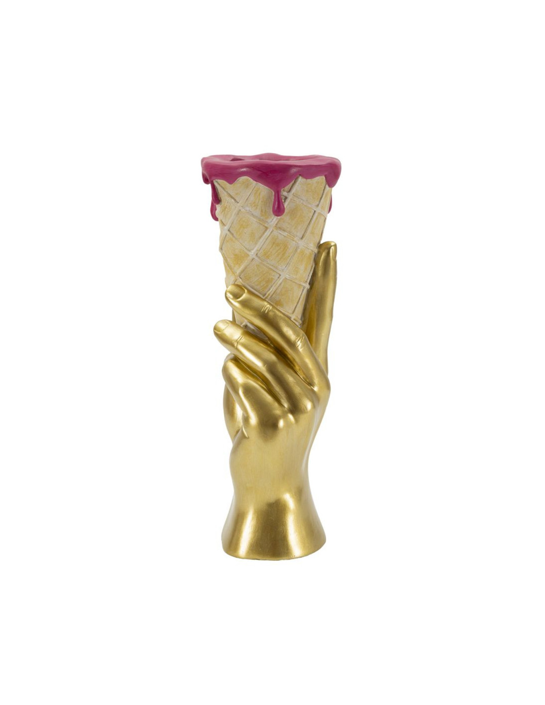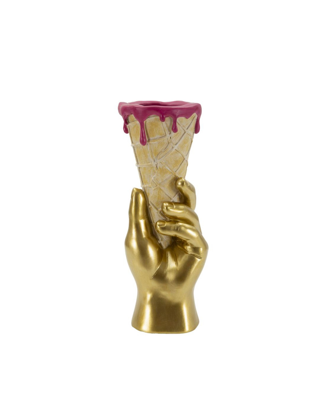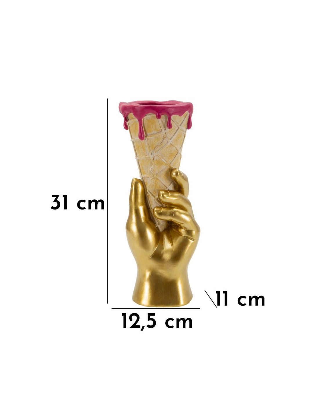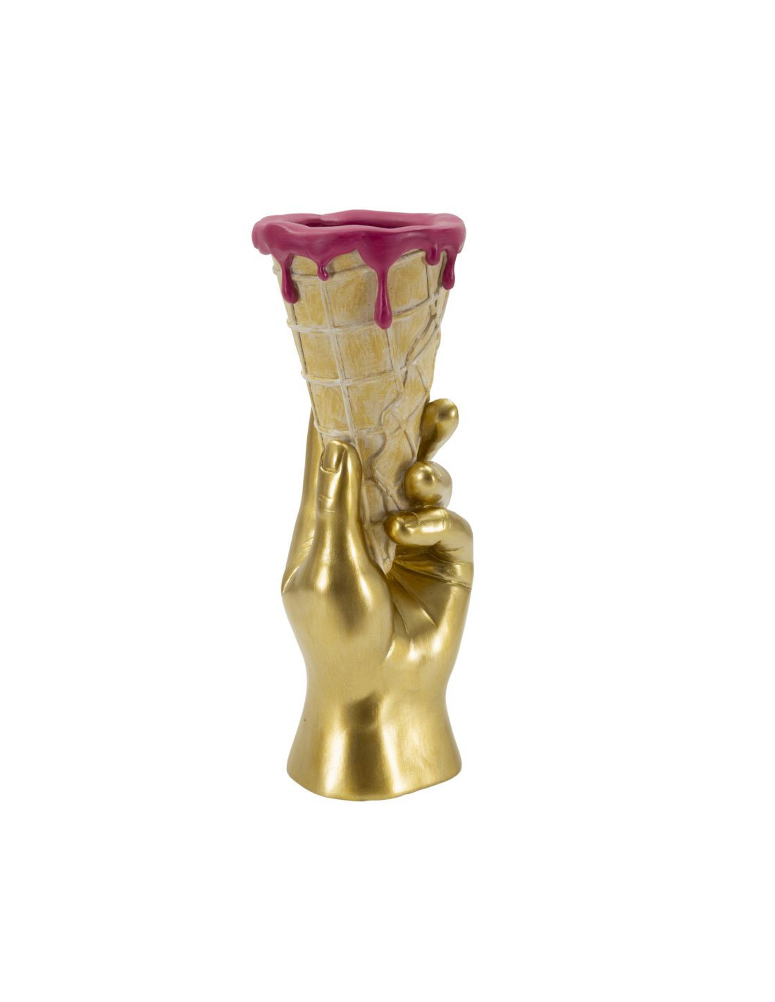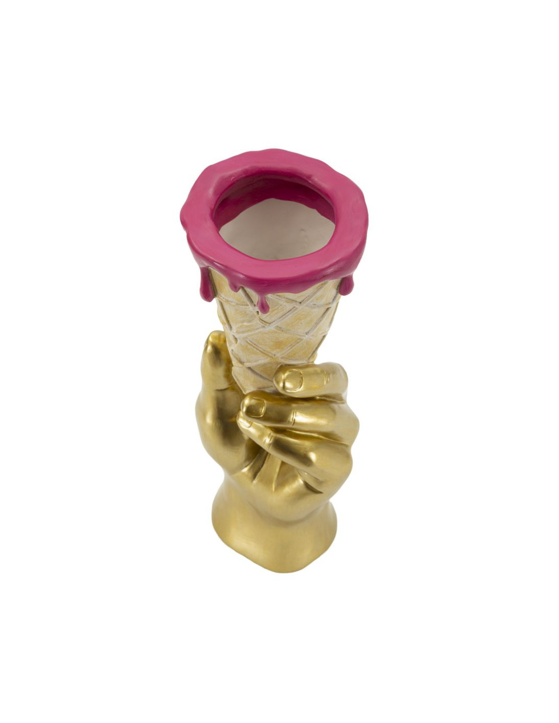 Cache pot sur pied original moderne Cornet à glace Hauteur 31 cm Résine Doré Beige Rose fuchsia Cono
