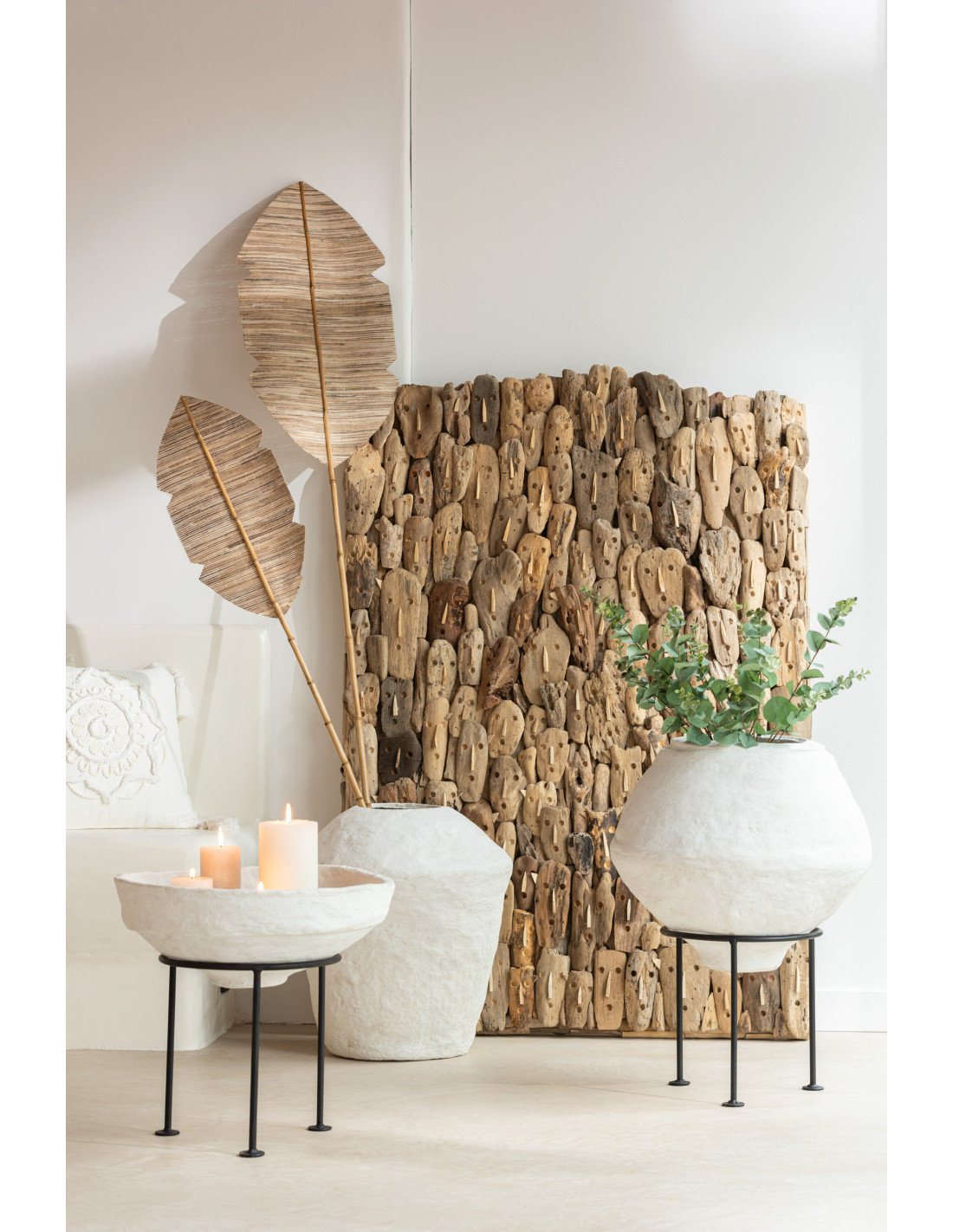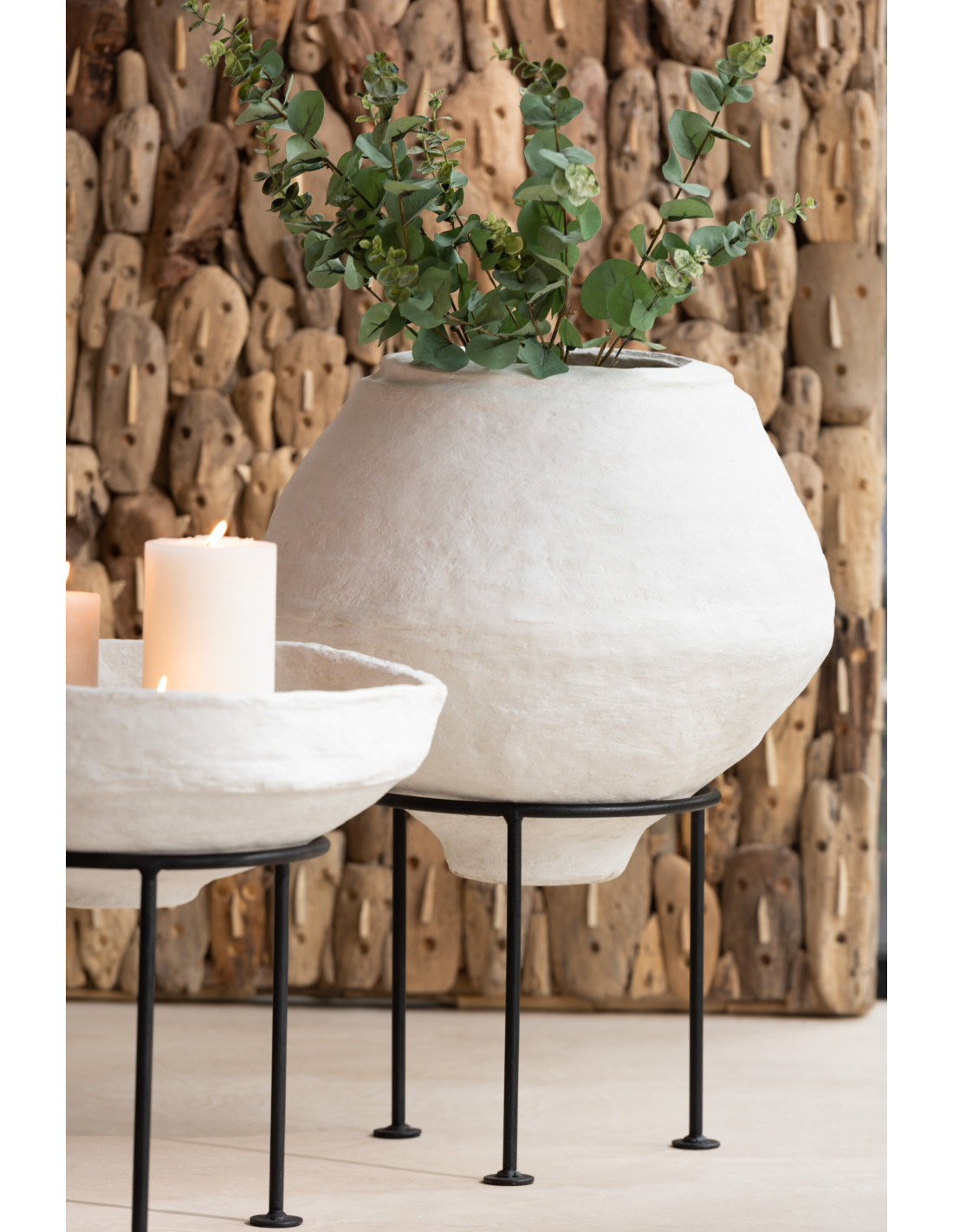 Cache-pot sur pied XL en Papier maché Blanc Métal Noir Chad Diamètre 44 cm