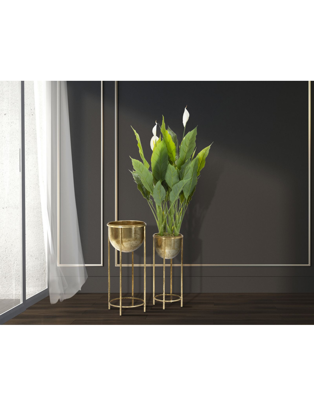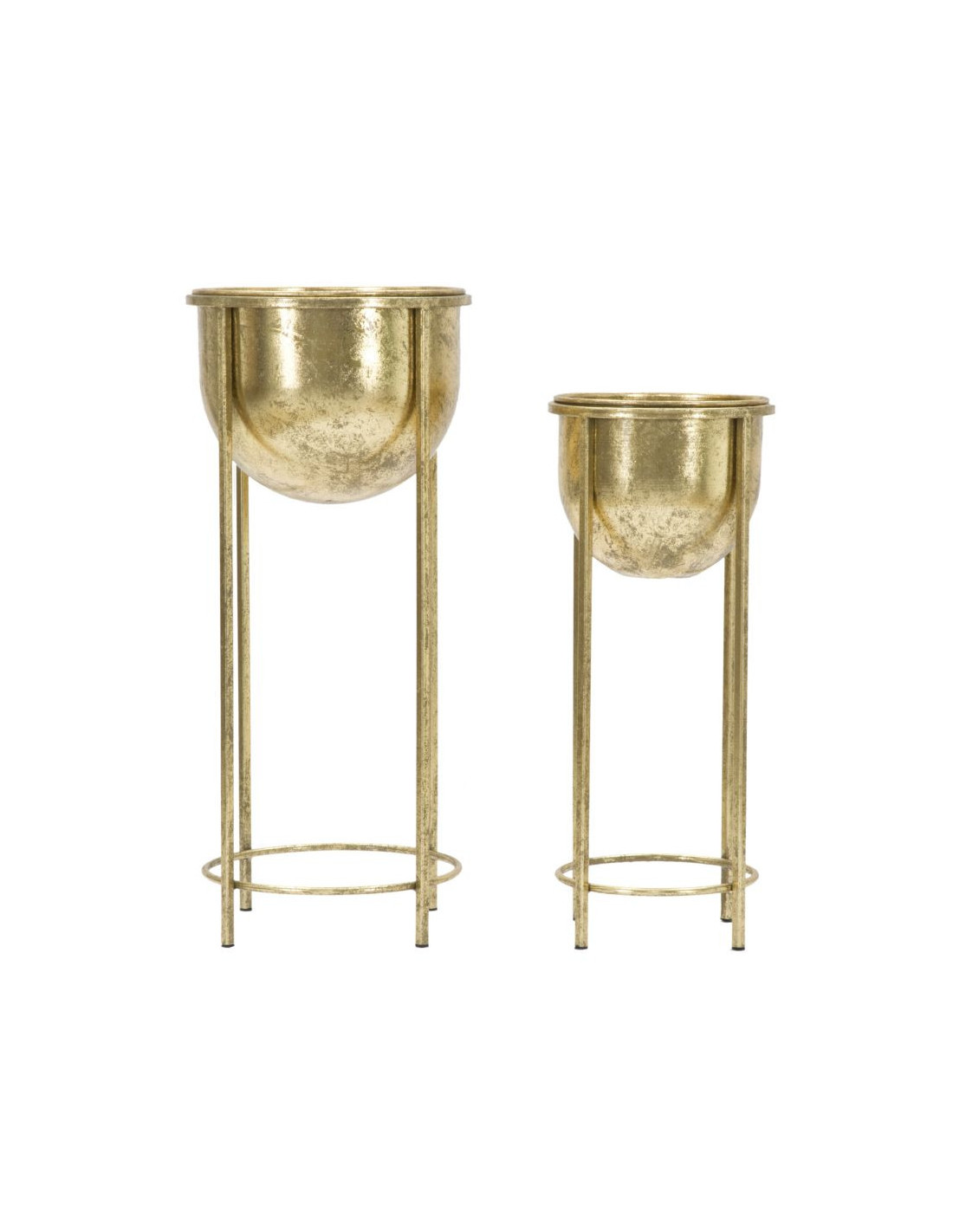 Cache pot sur pieds moderne Rond en Métal Doré Viielli Elryn (Lot de 2)