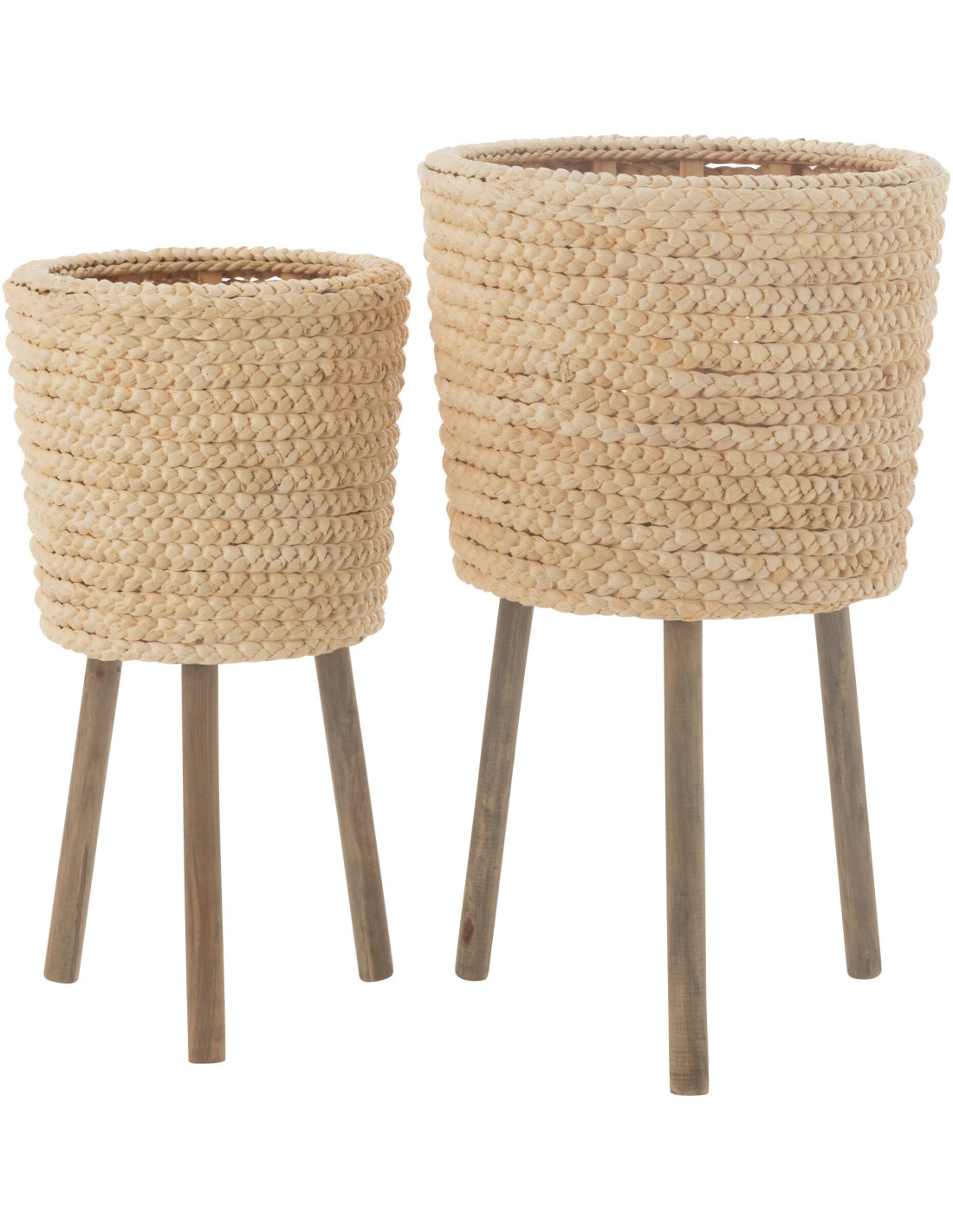 Cache pot sur pieds Rond en Feuille de maïs Bois Naturel Adron (Lot de 2)