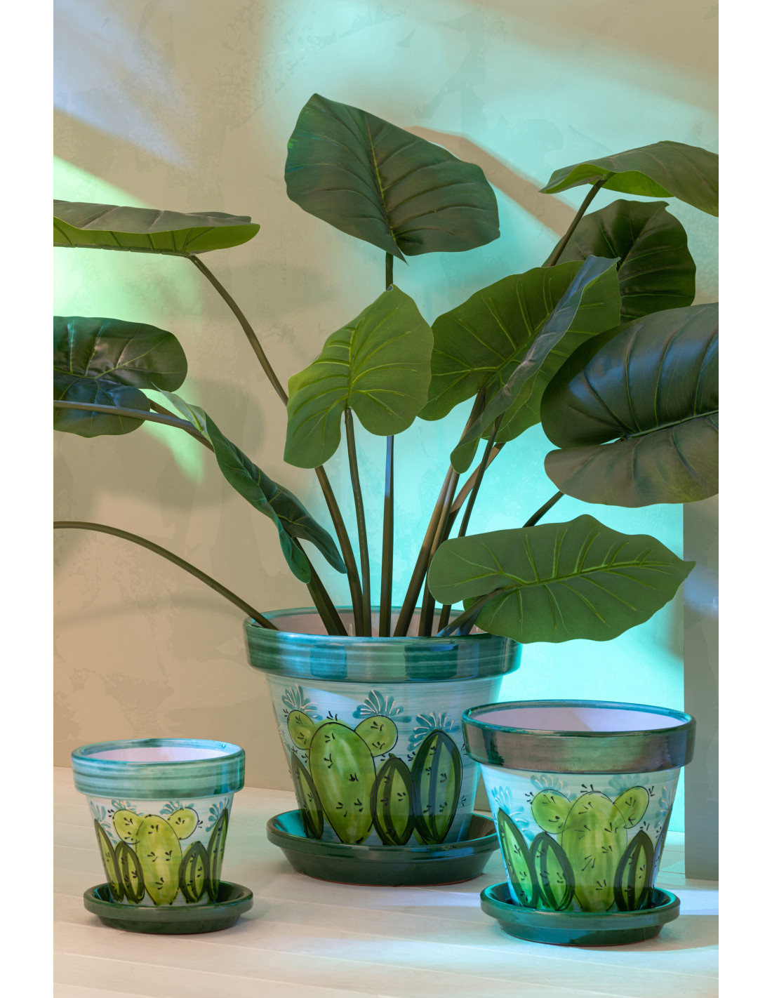 Cache-pot tropical chic avec soucoupe D 27 cm Céramique Vert Turquoise Motif cactus Cactéra