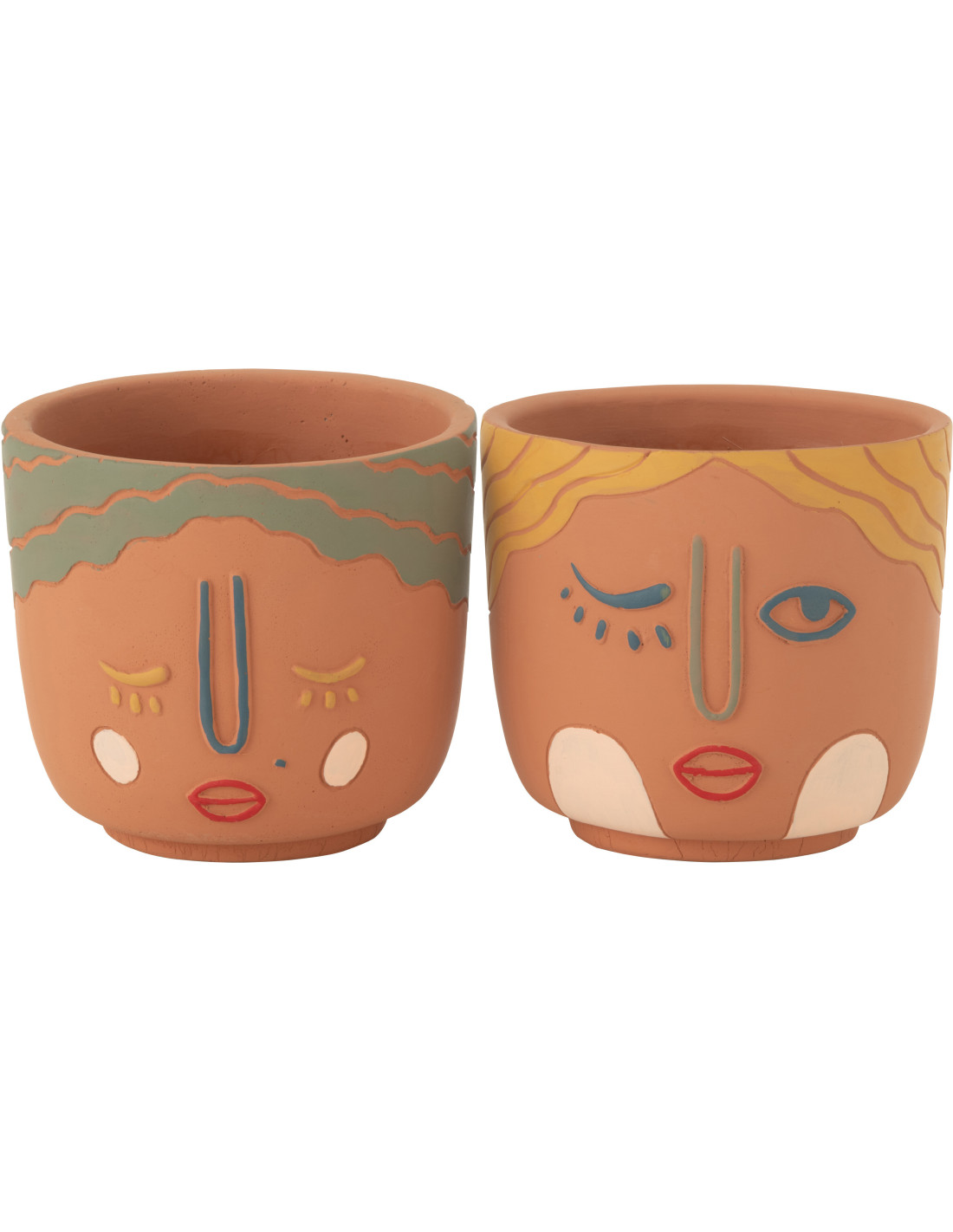 Cache pot Visage Rond Diamètre 14 cm en Ciment Terracotta Double (Lot de 2) - 1