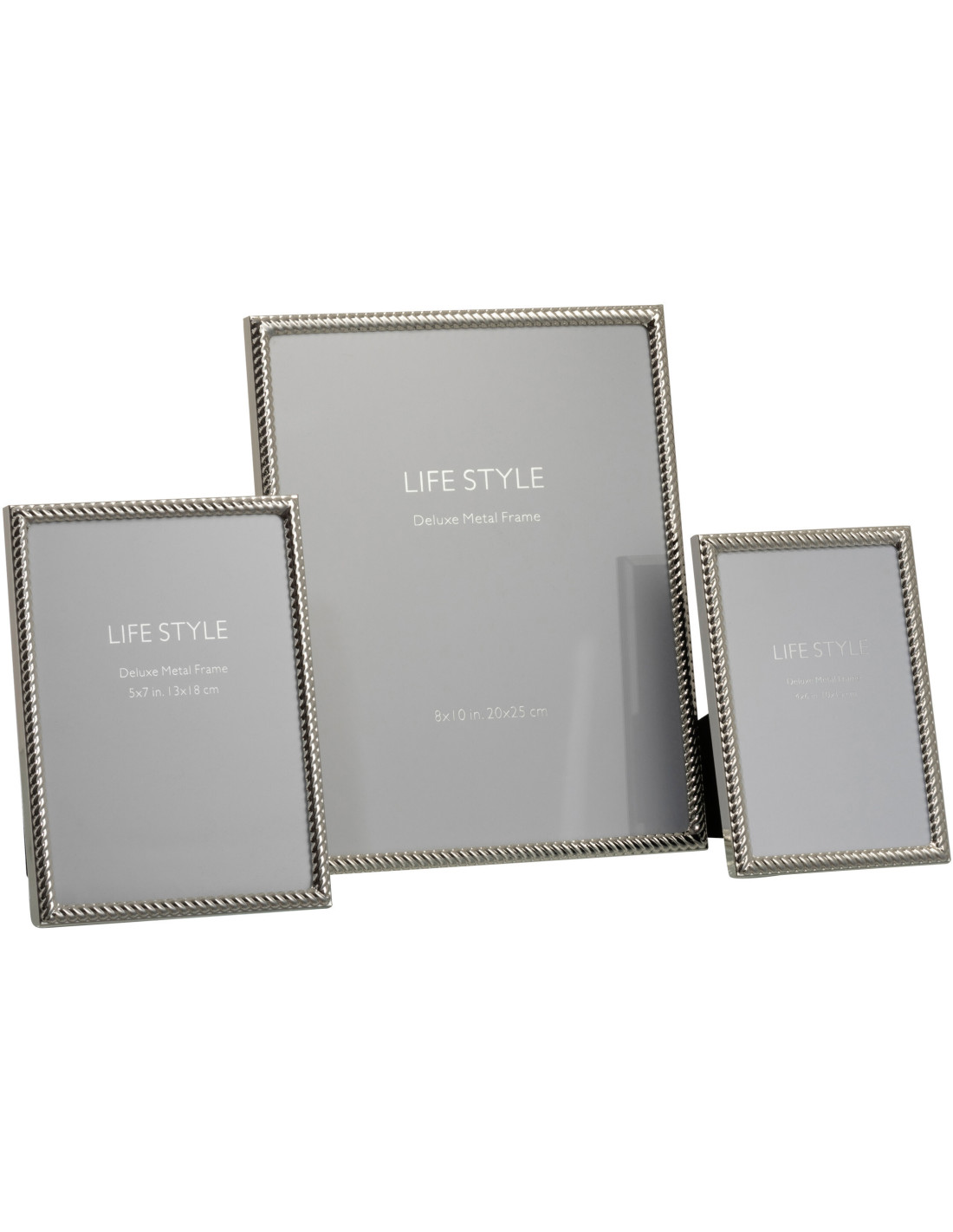 Cadre photo Arrondi Matino en Métal Argenté Motif lignes obliques pour photo 20x25 - 1