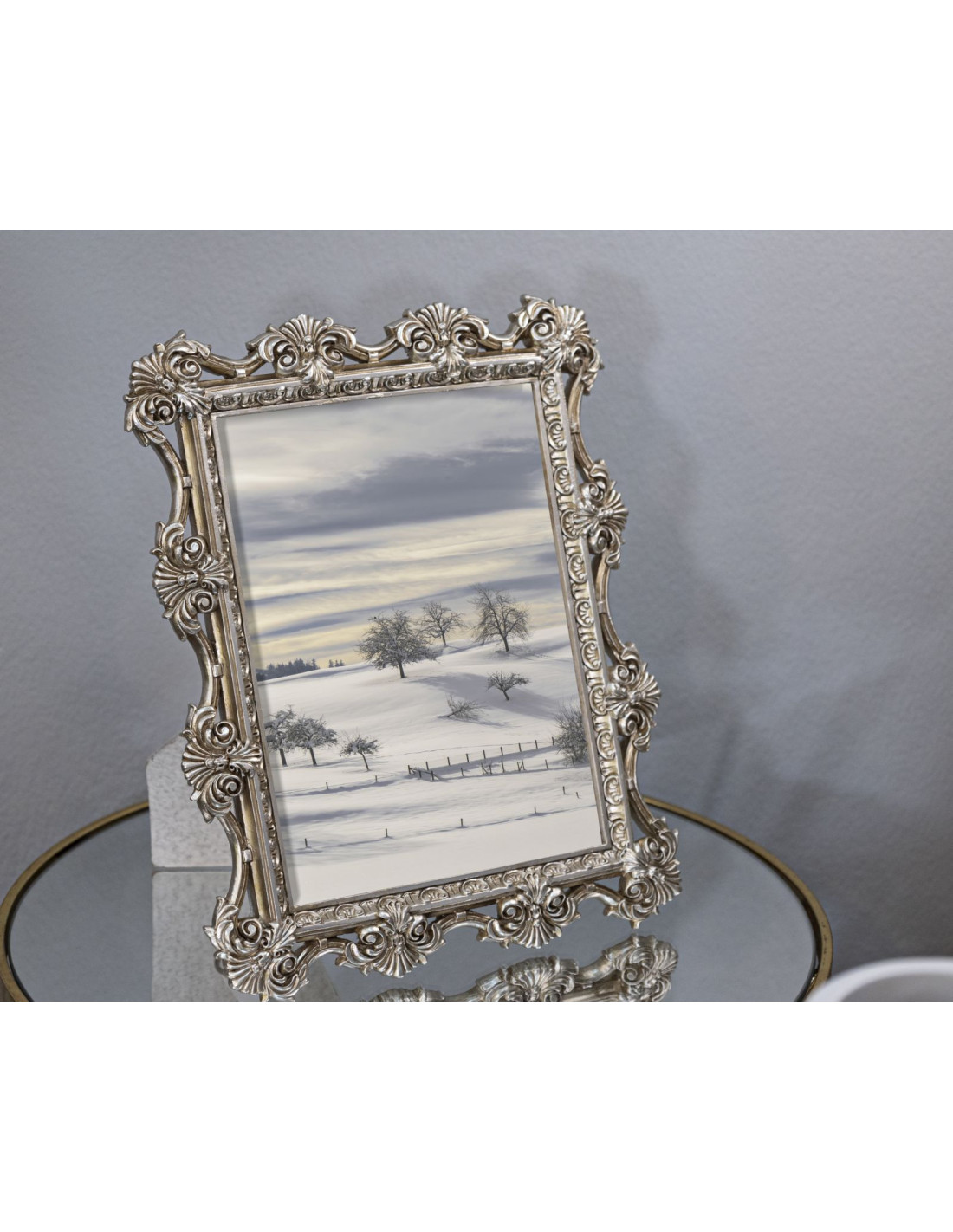 Cadre photo baroque Fleurs & Volutes pour photo 15x20 Résine Argenté Florence