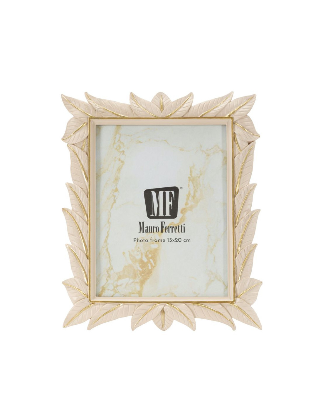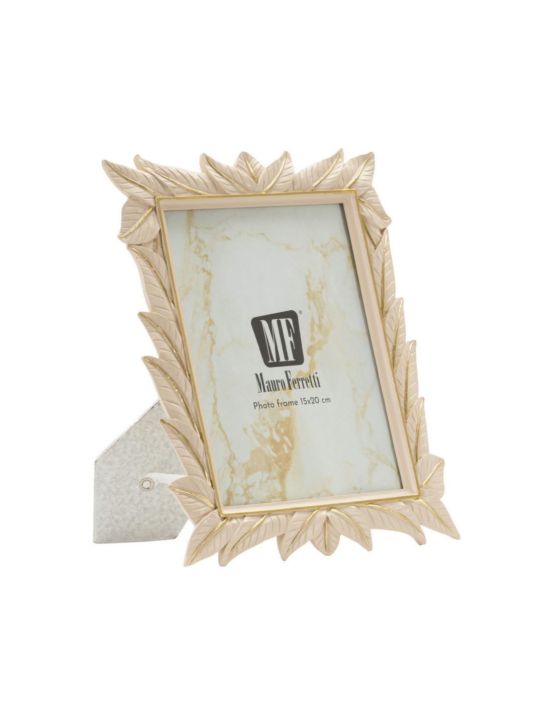 Cadre photo Feuilles style art déco pour photo 15x20 Résine Blanc crème Leaffy