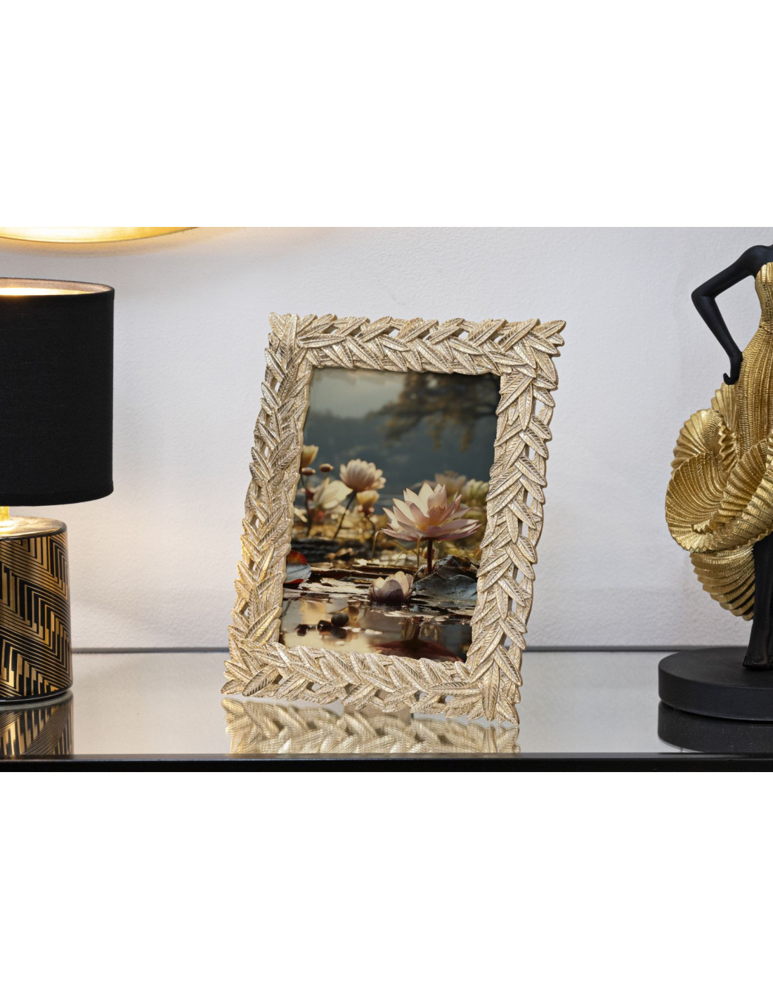 Cadre photo moderne chic Feuilles de laurier en Résine Doré pour photo 15x20 cm Solis