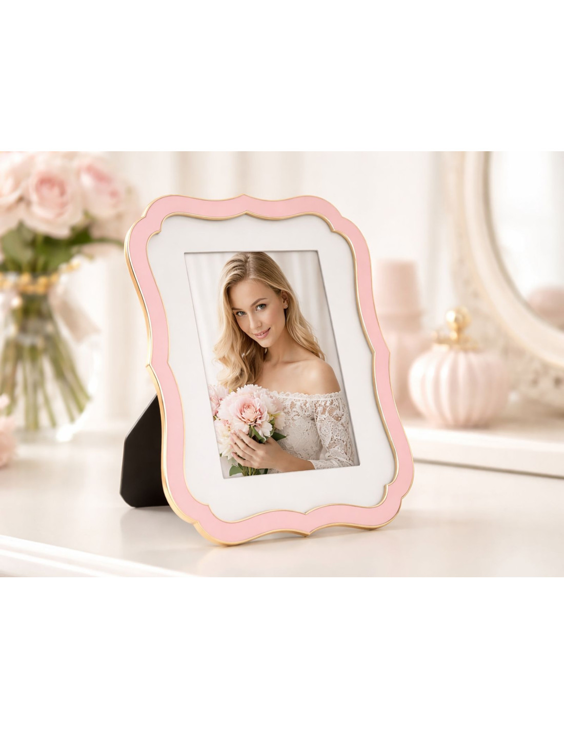 Cadre photo moderne chic Volutes pour photo 15x20 cm Métal Rose Doré Verre Margot