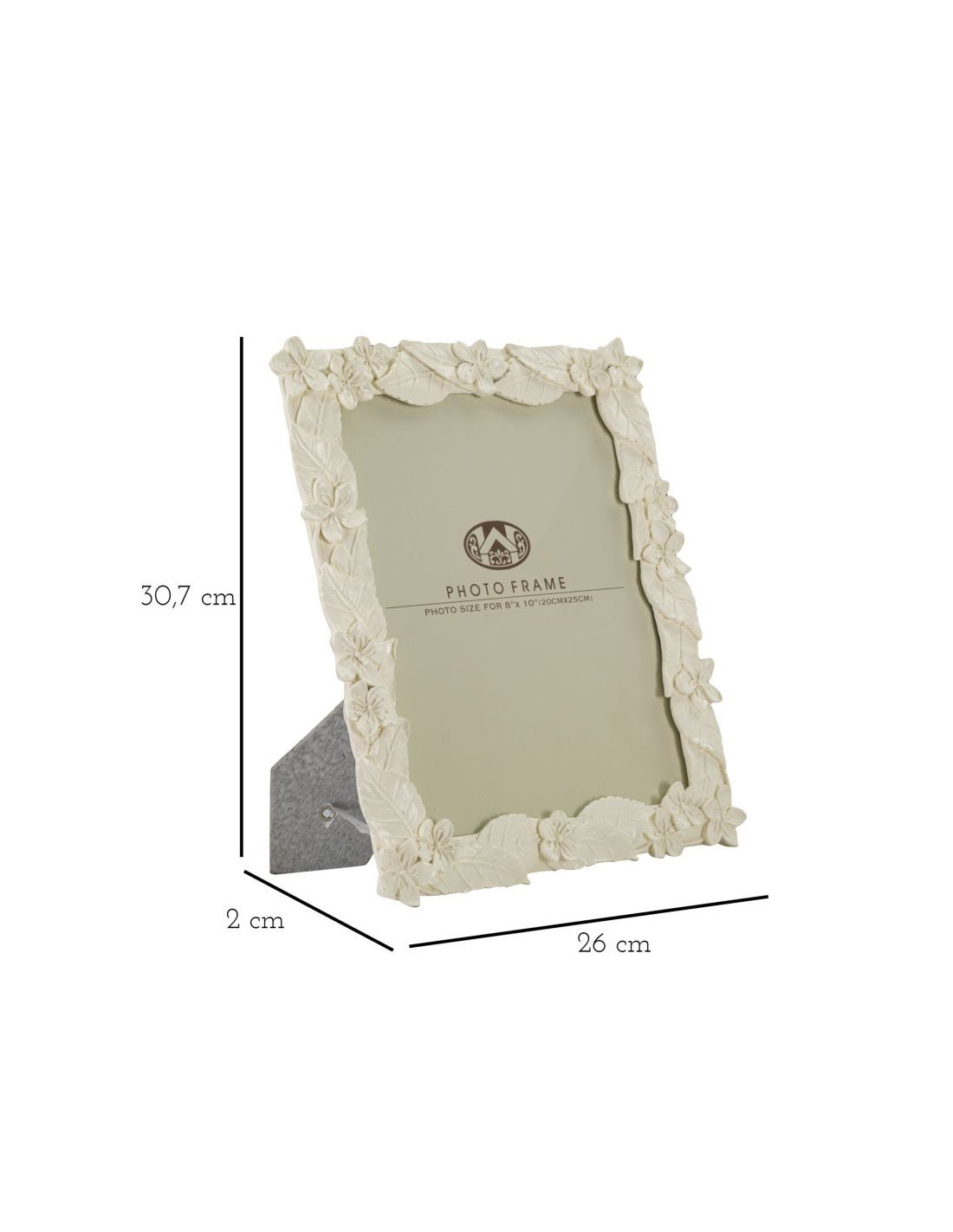 Cadre photo original Fleurs et Feuilles en Résine Blanc crème pour photo 20x25 cm Kelan