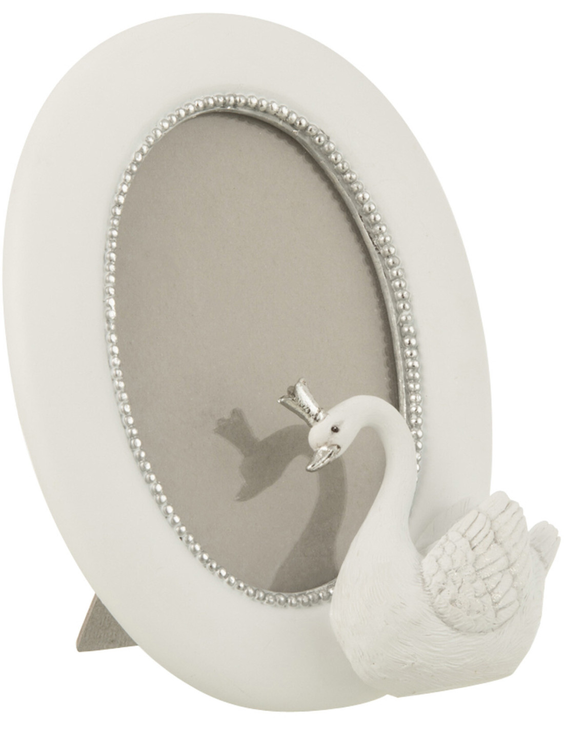 Cadre photo ovale Cygne Swan en Résine Blanc Argenté pour photo
