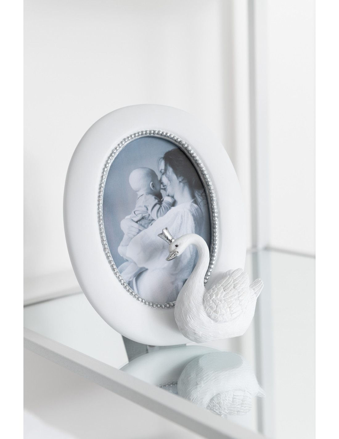 Cadre photo ovale Cygne Swan en Résine Blanc Argenté pour photo - 1