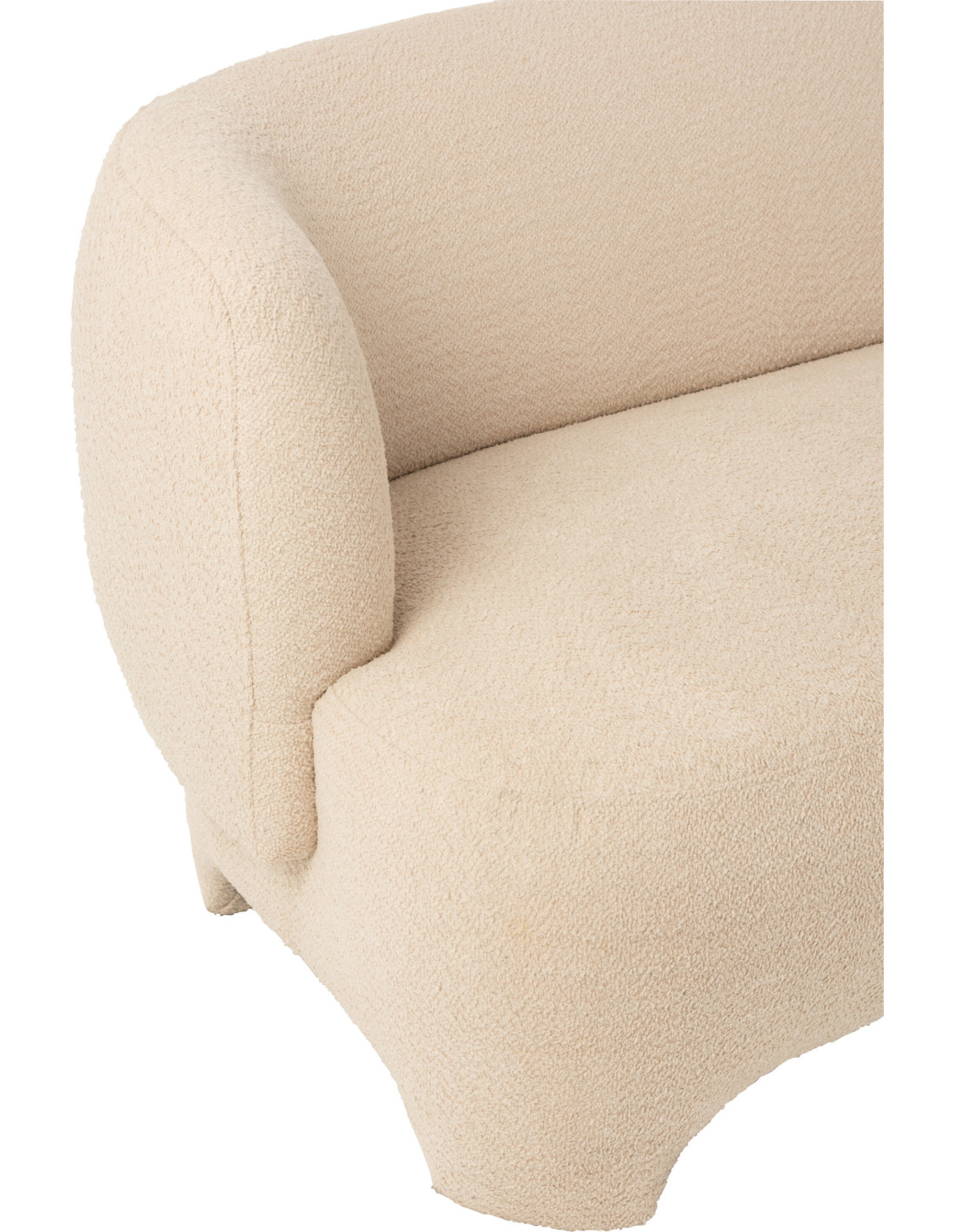 Petite Banquette demi lune 1 place en Tissu Beige Capitonné Bois d'hévéa Naturel Taramundi
