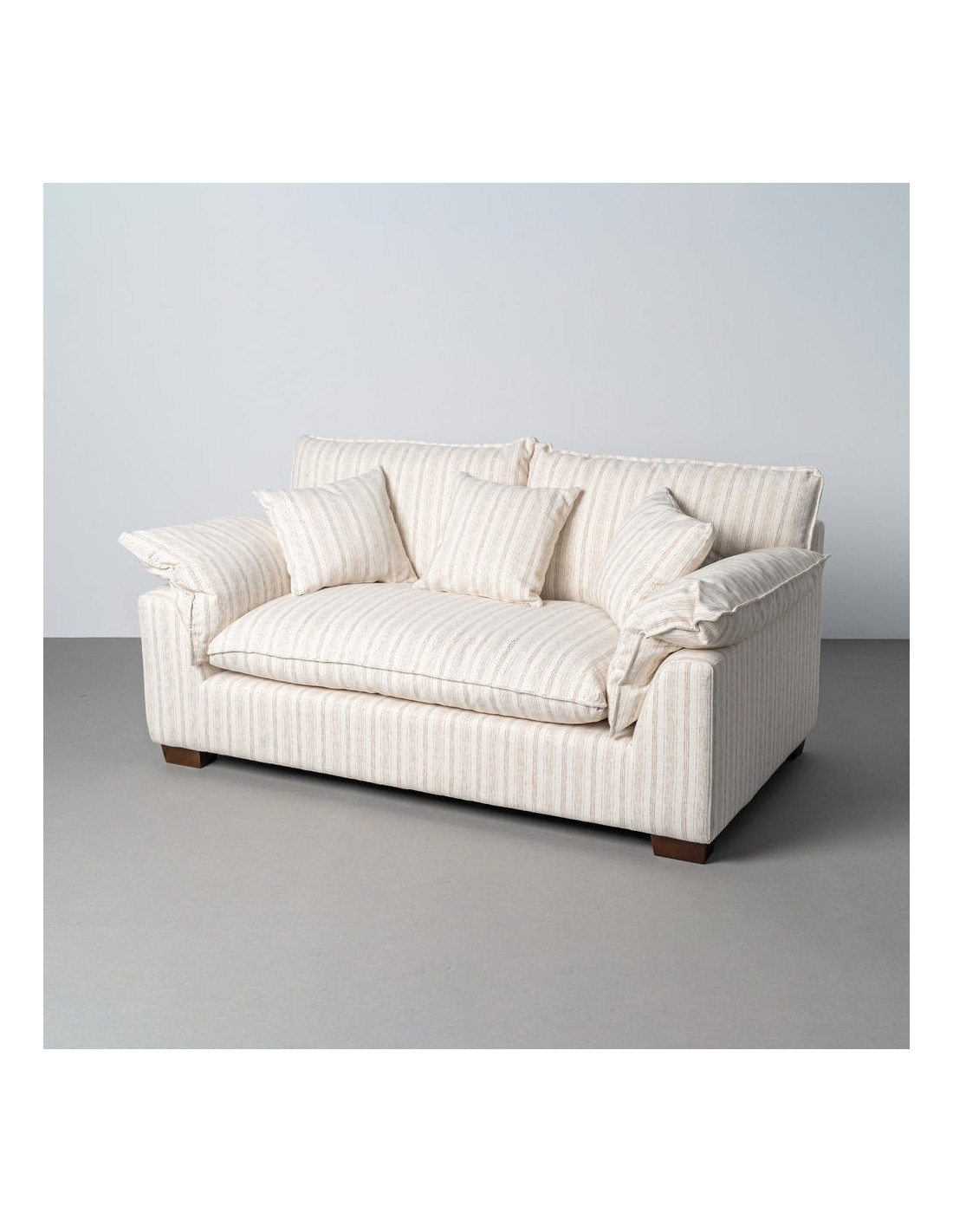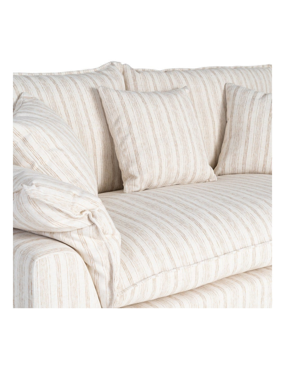 Canapé design contemporain Droit 2 places 178 cm Tissu Blanc crème Motif rayures Bois Linéva