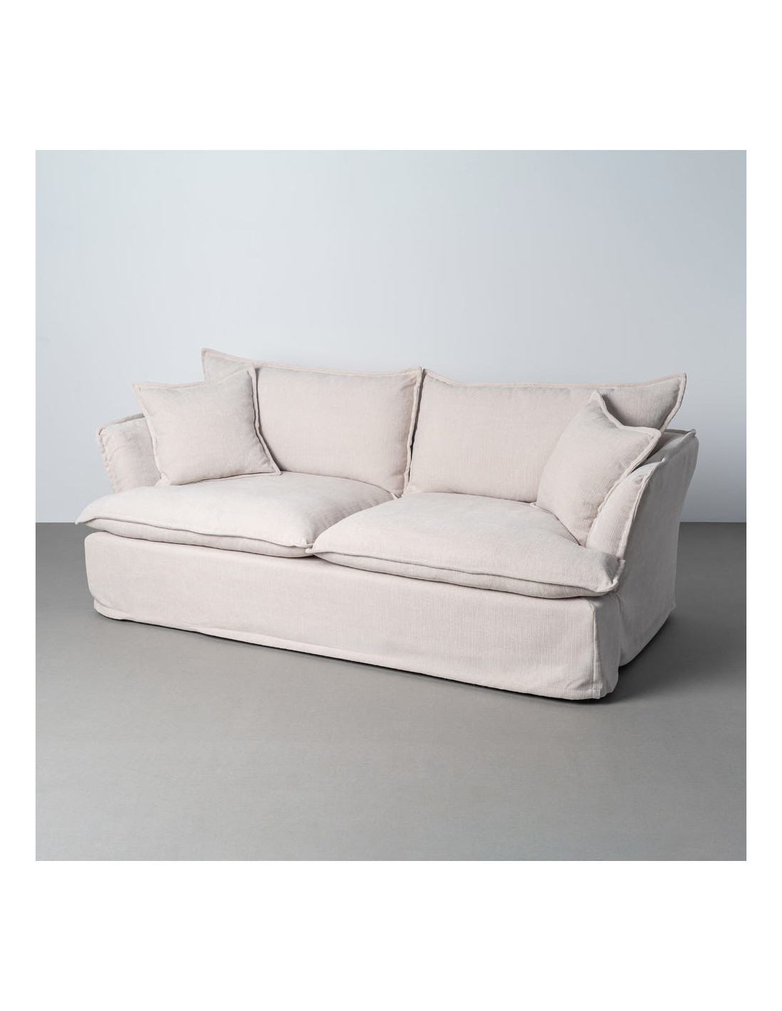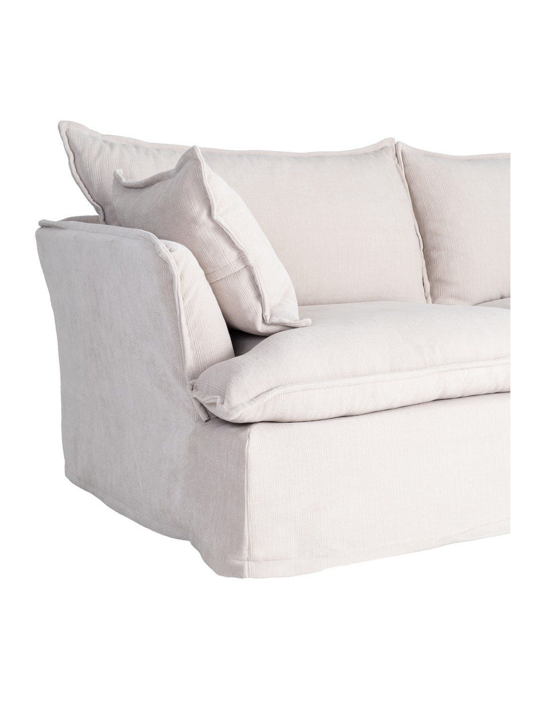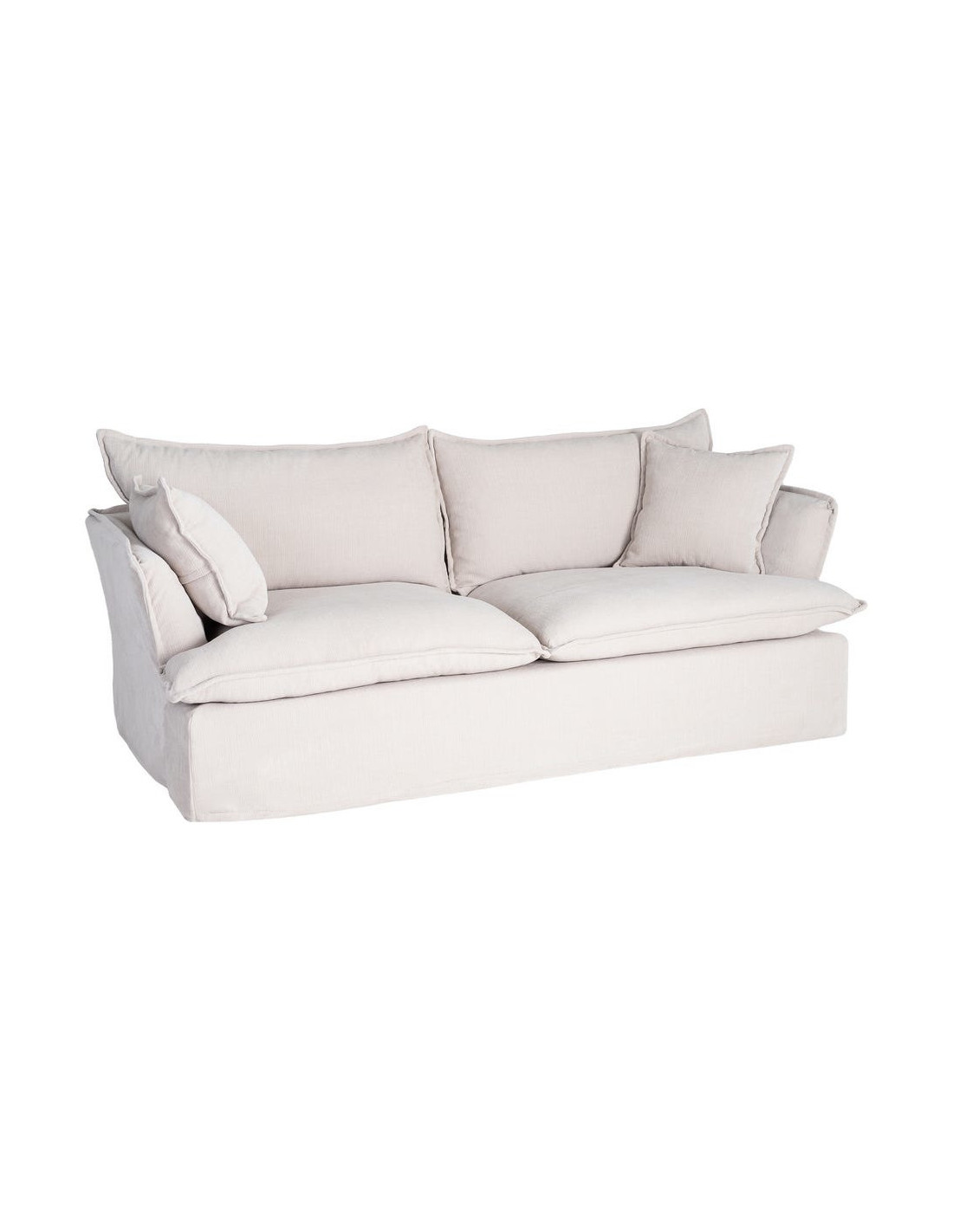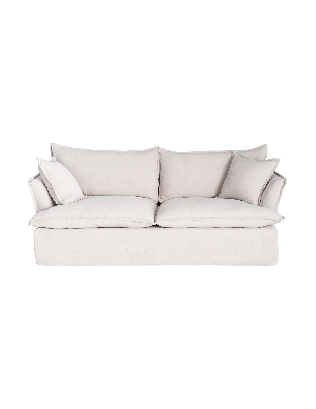 Canapé design contemporain Droit 3 places 221 cm Tissu Blanc crème Bois Pluméa