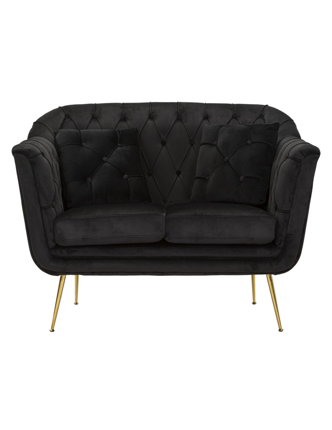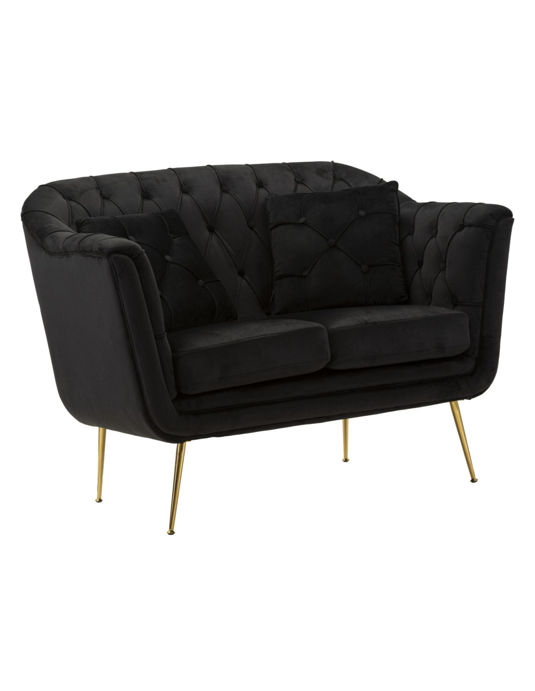 Canapé moderne chic capitonné Droit 2 places 130 cm Tissu Noir Métal Doré Budapest