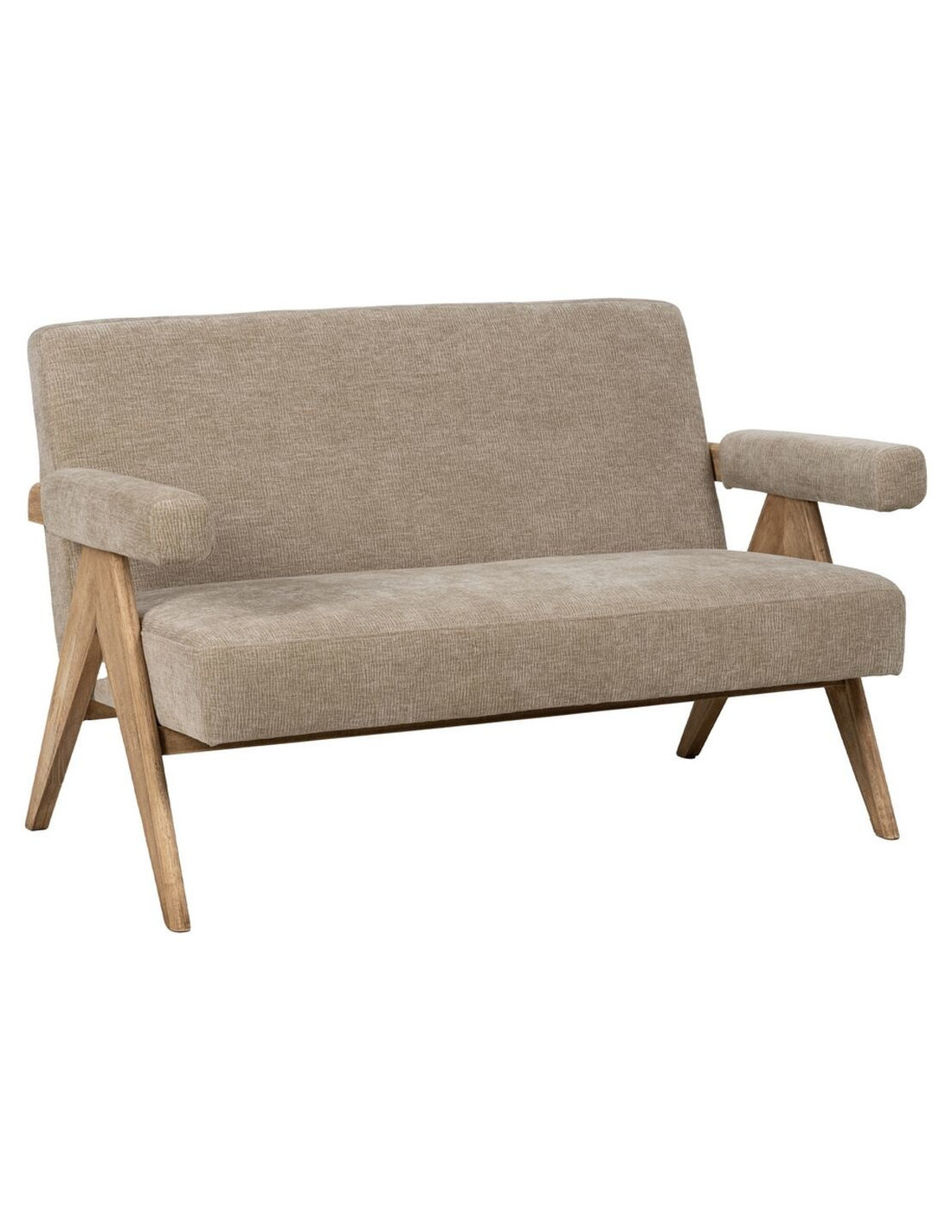 Canapé moderne chic Droit 2 places en Tissu Beige Bois Naturel Tudela
