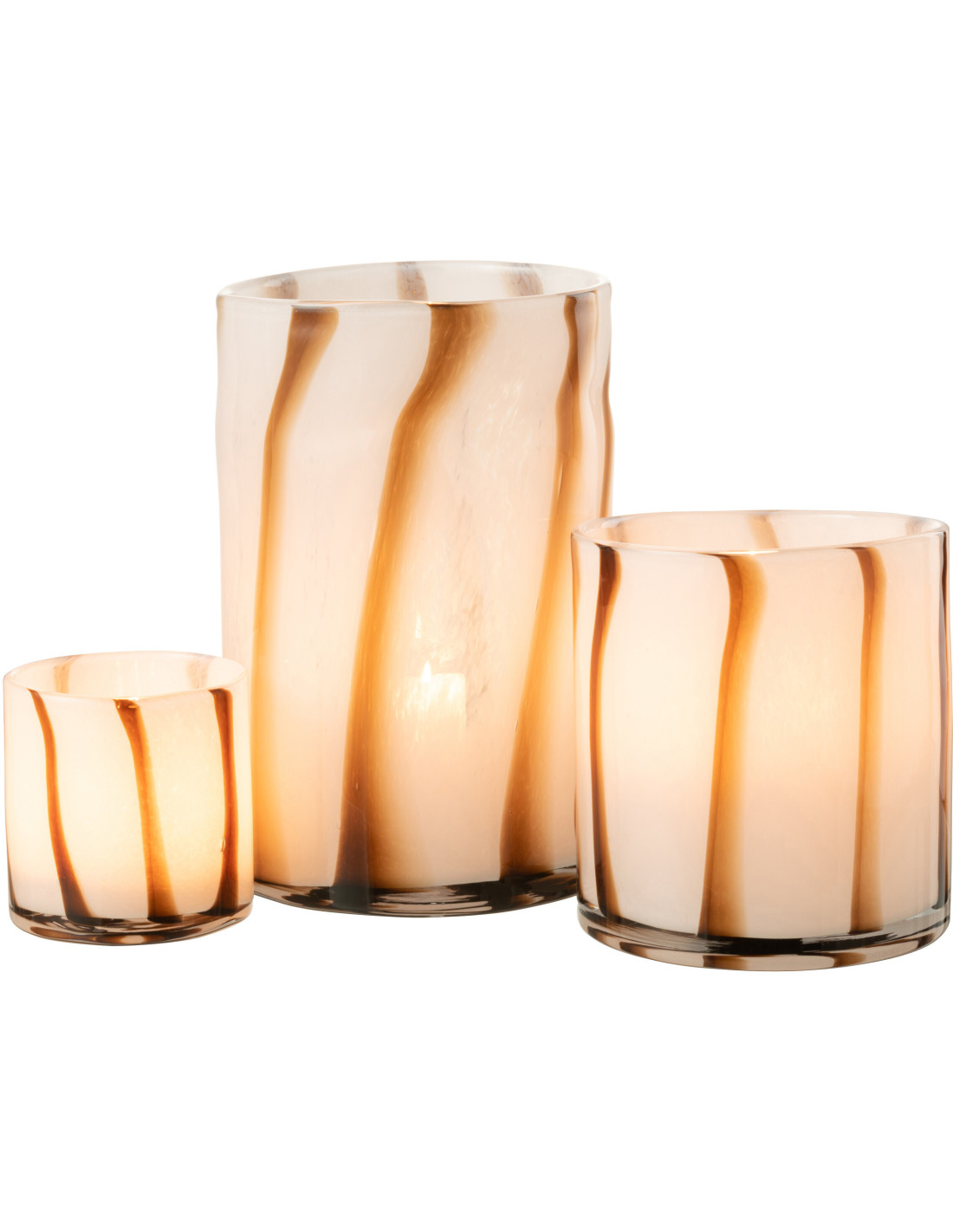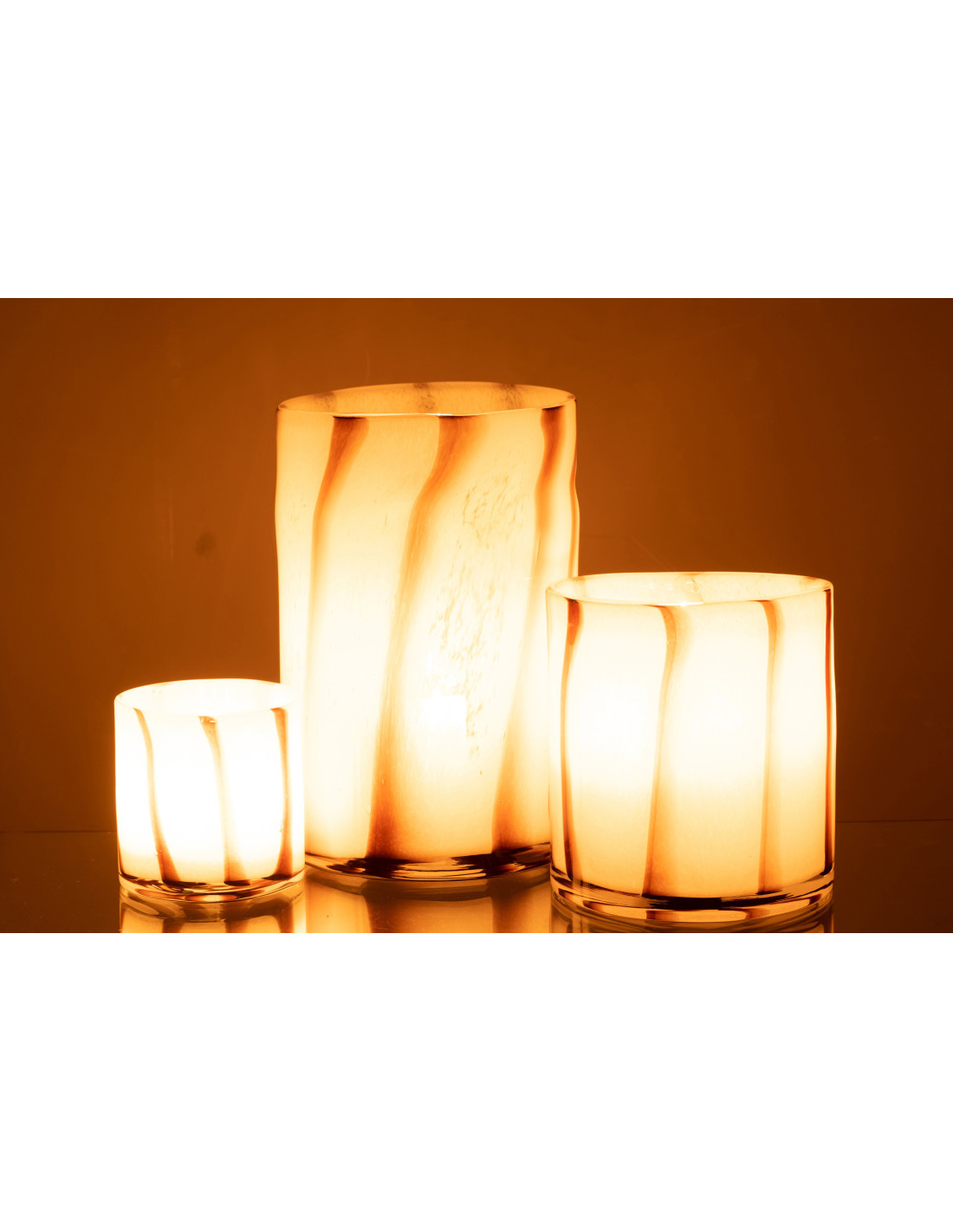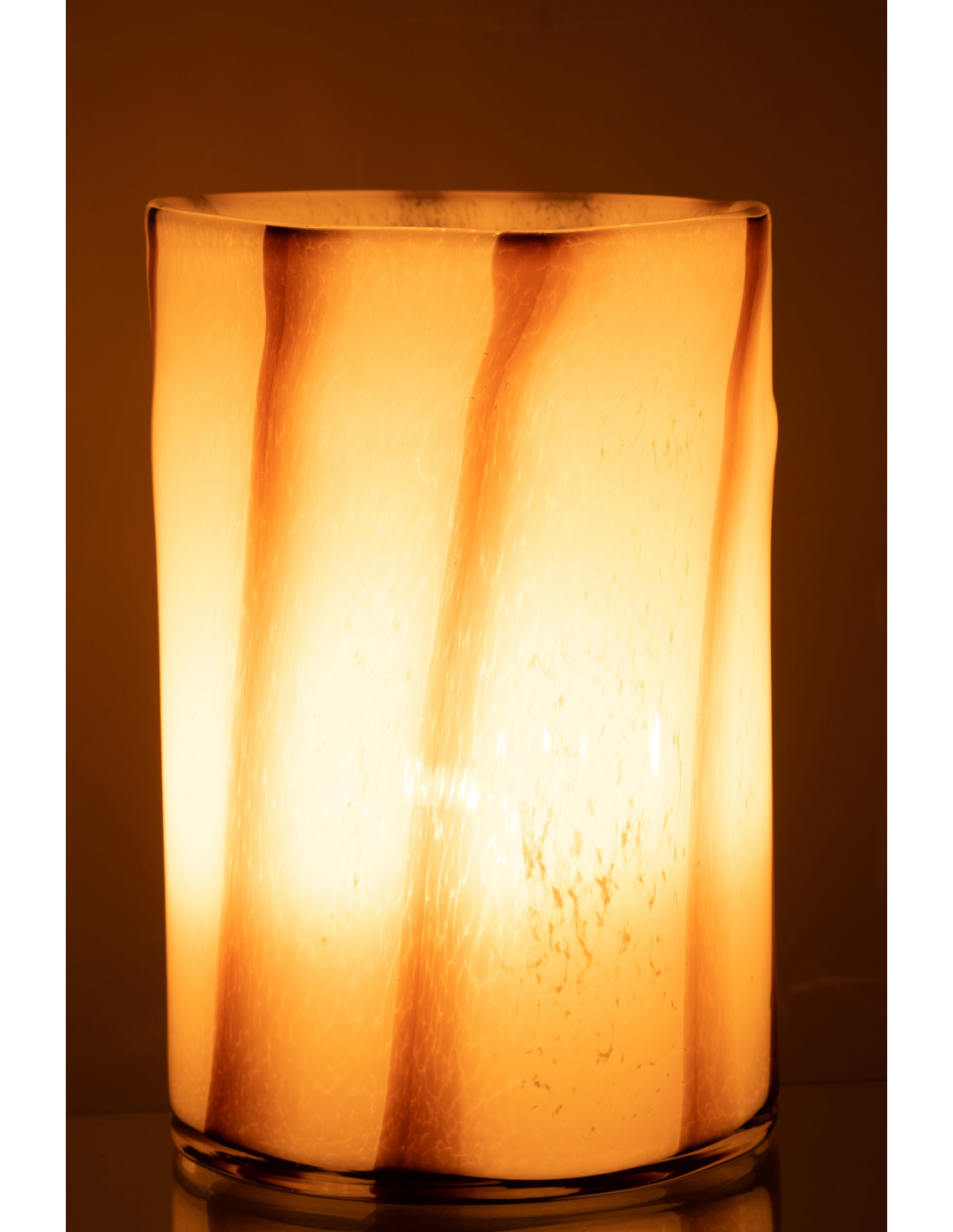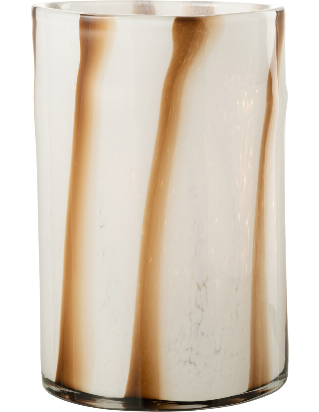 CASSIUS - Vase large blanc rayé marron en verre 29 cm