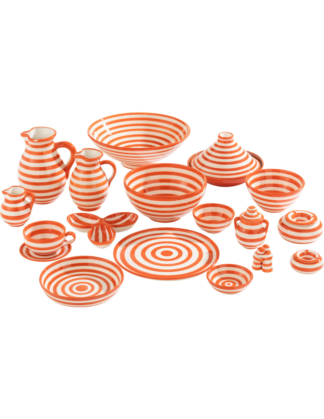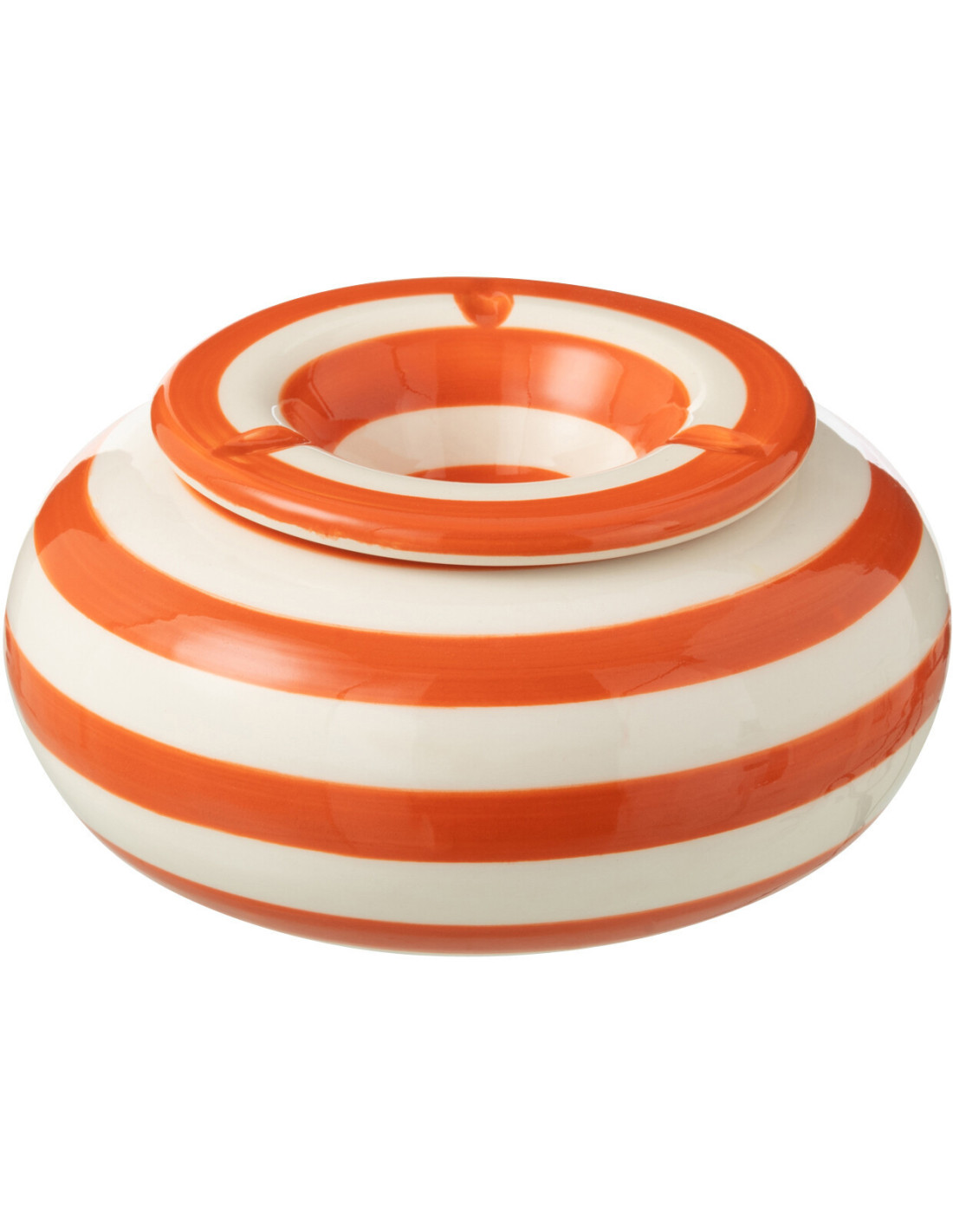 Cendrier original 14 cm en Céramique Orange Blanc Motif lignes Granada