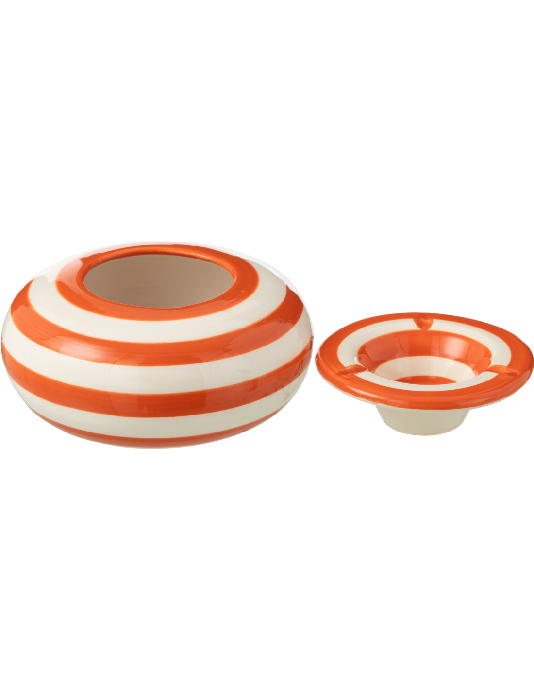 Cendrier original 14 cm en Céramique Orange Blanc Motif lignes Granada - 1