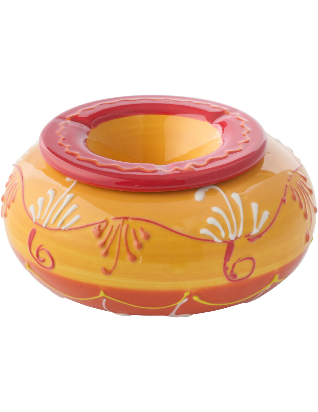 Cendrier style méditerranéen 14 cm Céramique Orange Rouge Motif floral Siena