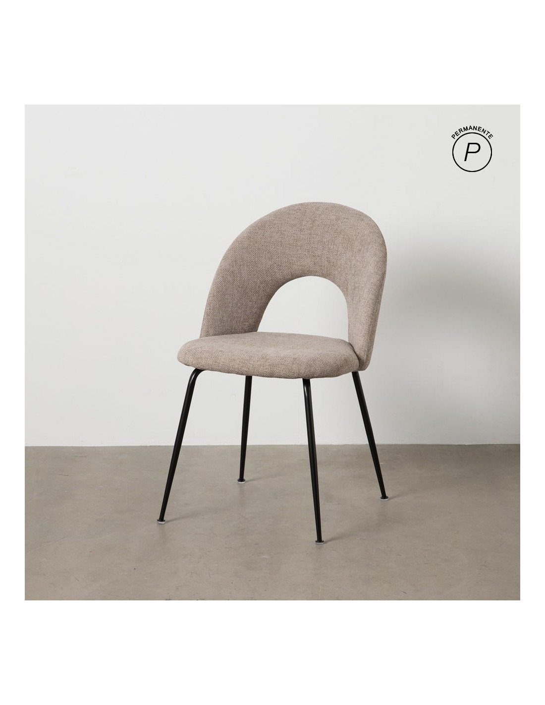 Chaise arrondie mid-century moderne en Tissu Taupe Métal Noir Bayani (Lot de 4) - 1