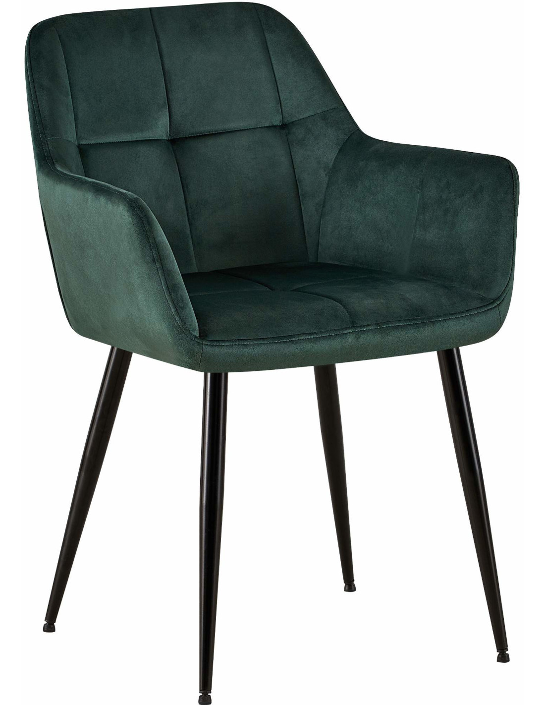 Fauteuil de table Lorie en Velours Vert Métal Noir Mat